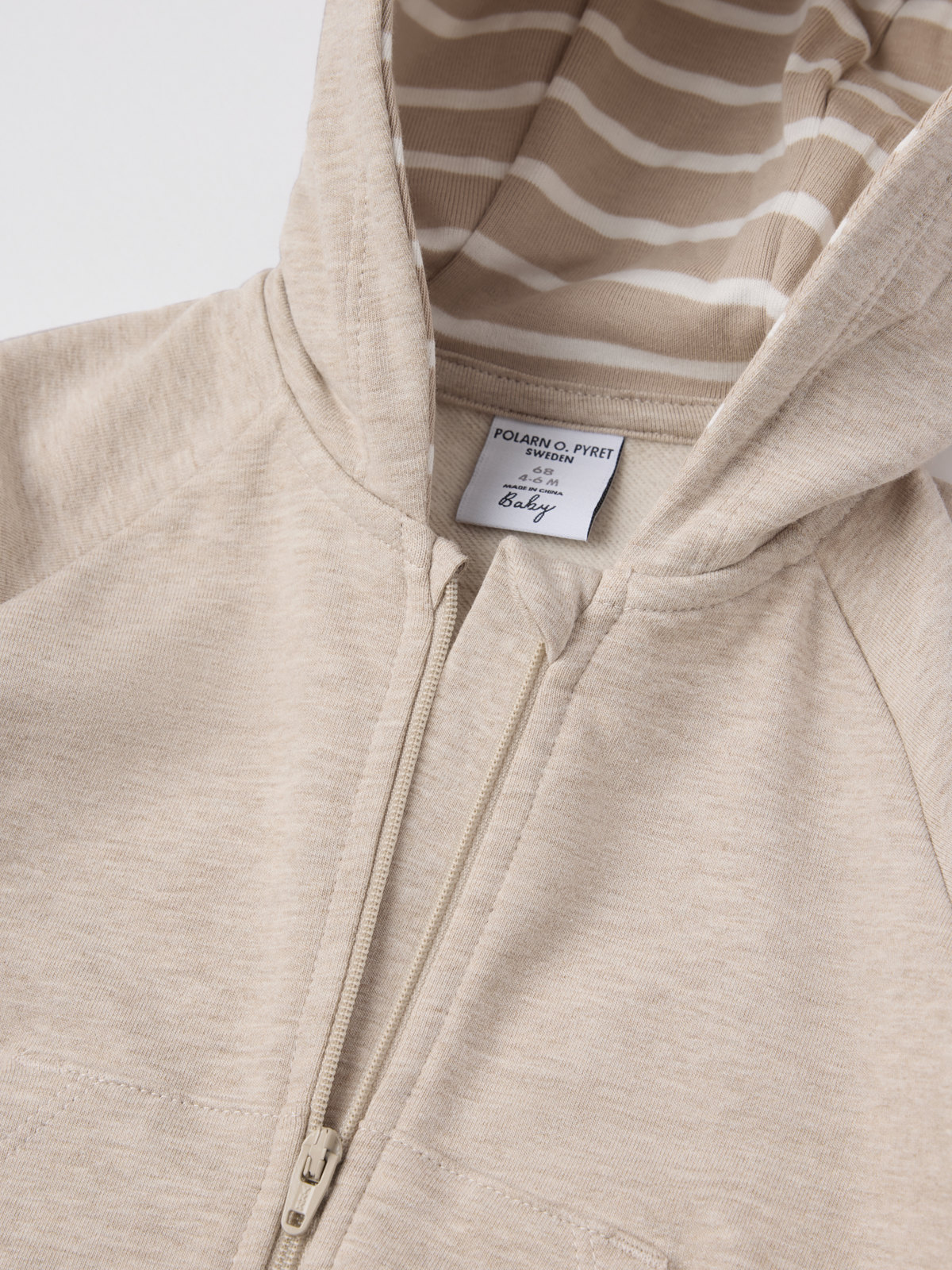 Weicher Overall aus Bio-Baumwolle in anschmiegsamer Sweatshirtqualität und mit angerauter Innenseite für Babys. Der Overall hat eine Kängurutasche und eine fest angesetzte Kapuze, die mit weichem Baumwolltrikot in unseren klassischen Streifen gefüttert ist. Der lange Reißverschluss vom Hals bis zum Beinabschluss erleichtert das An- und Ausziehen. Er ist oben mit einem Kinnschutz versehen, damit an Kinn und Wangen nichts kratzt.
