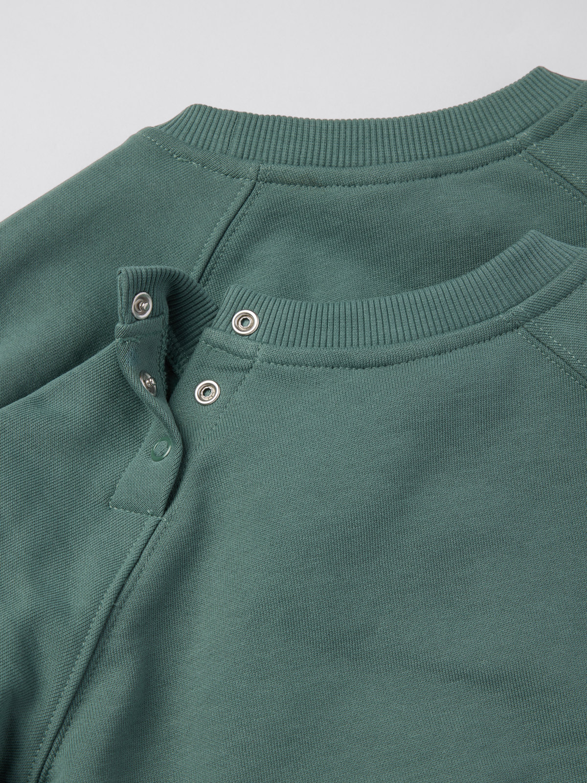 Die Größen 86 bis 92 werden hinten an einer Schulter mit Druckknöpfen geschlossen, um das An- und Ausziehen zu erleichtern.