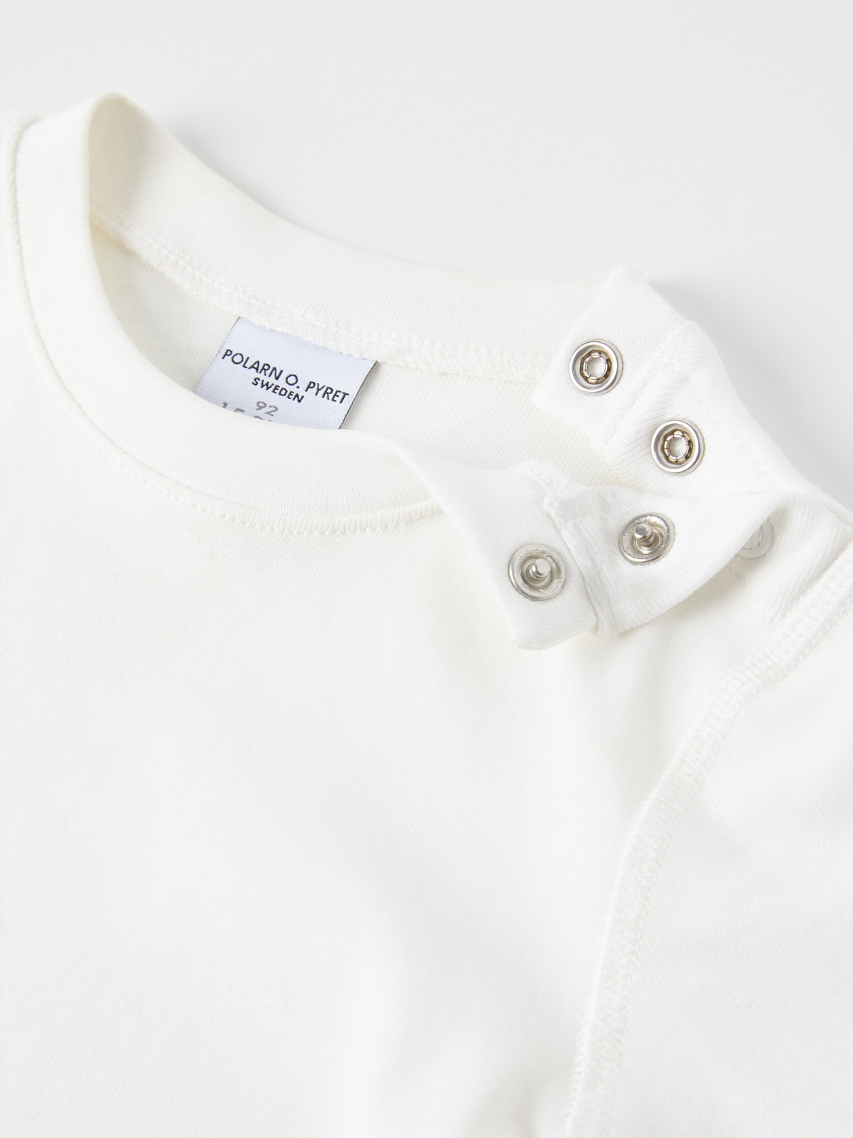 Die Größen 74 bis 92 werden auf einer Schulter mit Druckknöpfen geschlossen, um das An- und Ausziehen zu erleichtern.