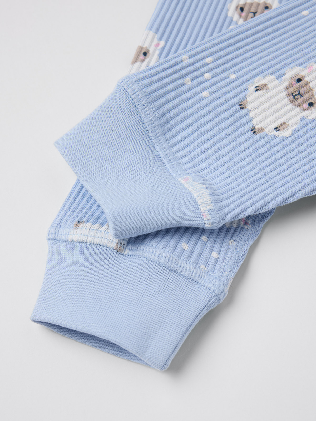 Ribbenstrick-Hose aus weicher Bio-Baumwolle für Babys. Die Hose hat besonders weiche, flache Nähte, die sanft zu empfindlicher Haut sind. Weiche Bündchen an den Beinabschlüssen und mit Knopflochgummi regulierbarer Bund.