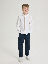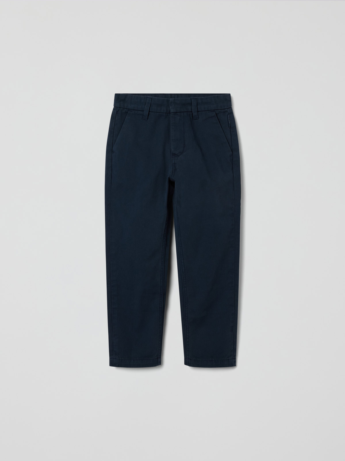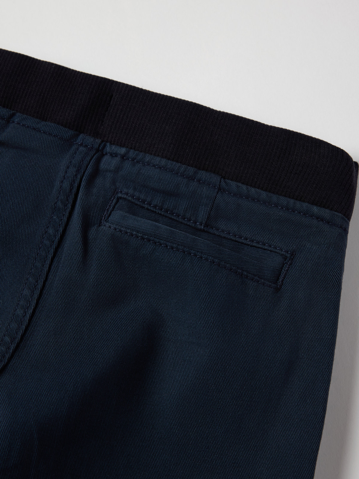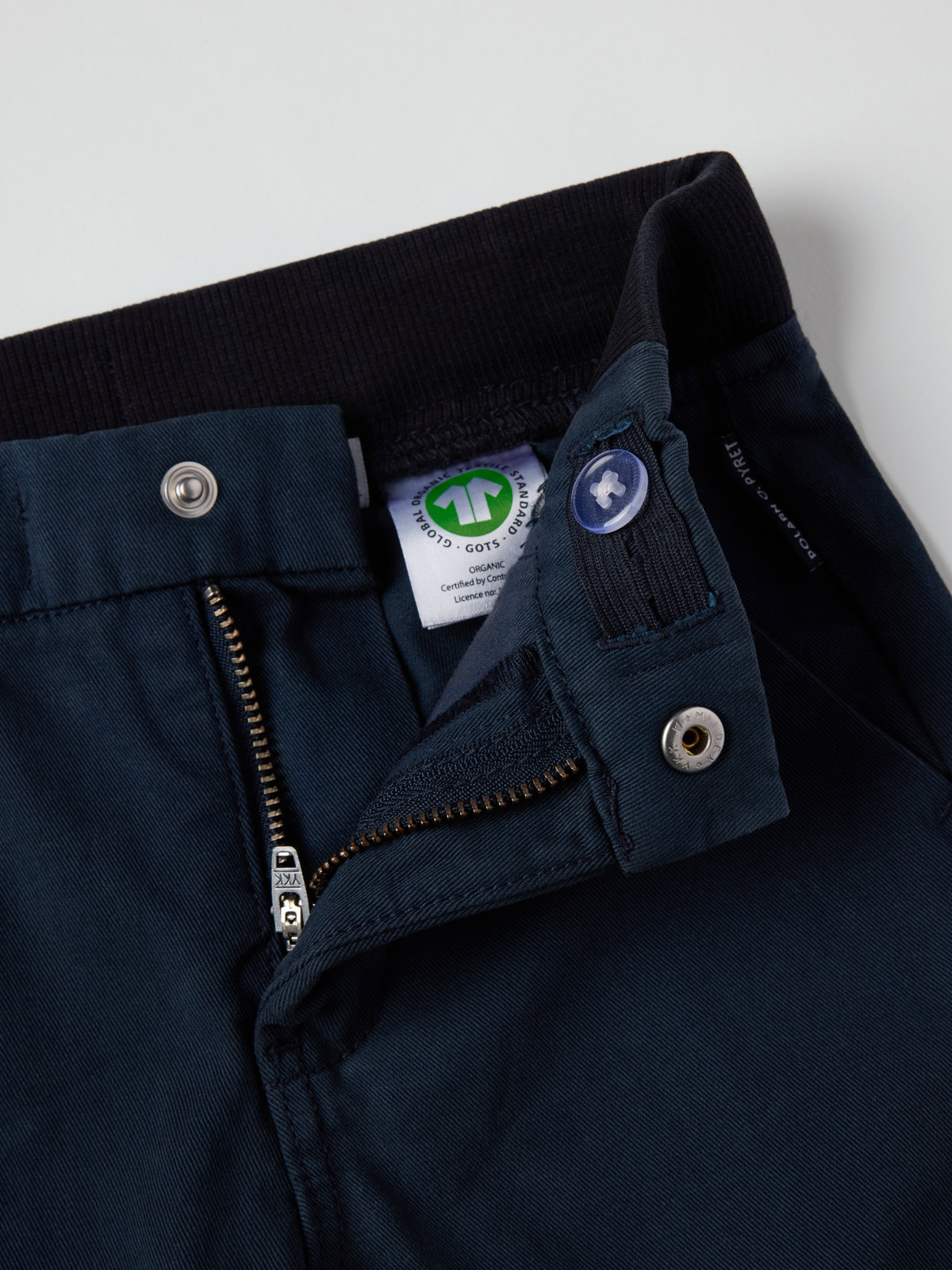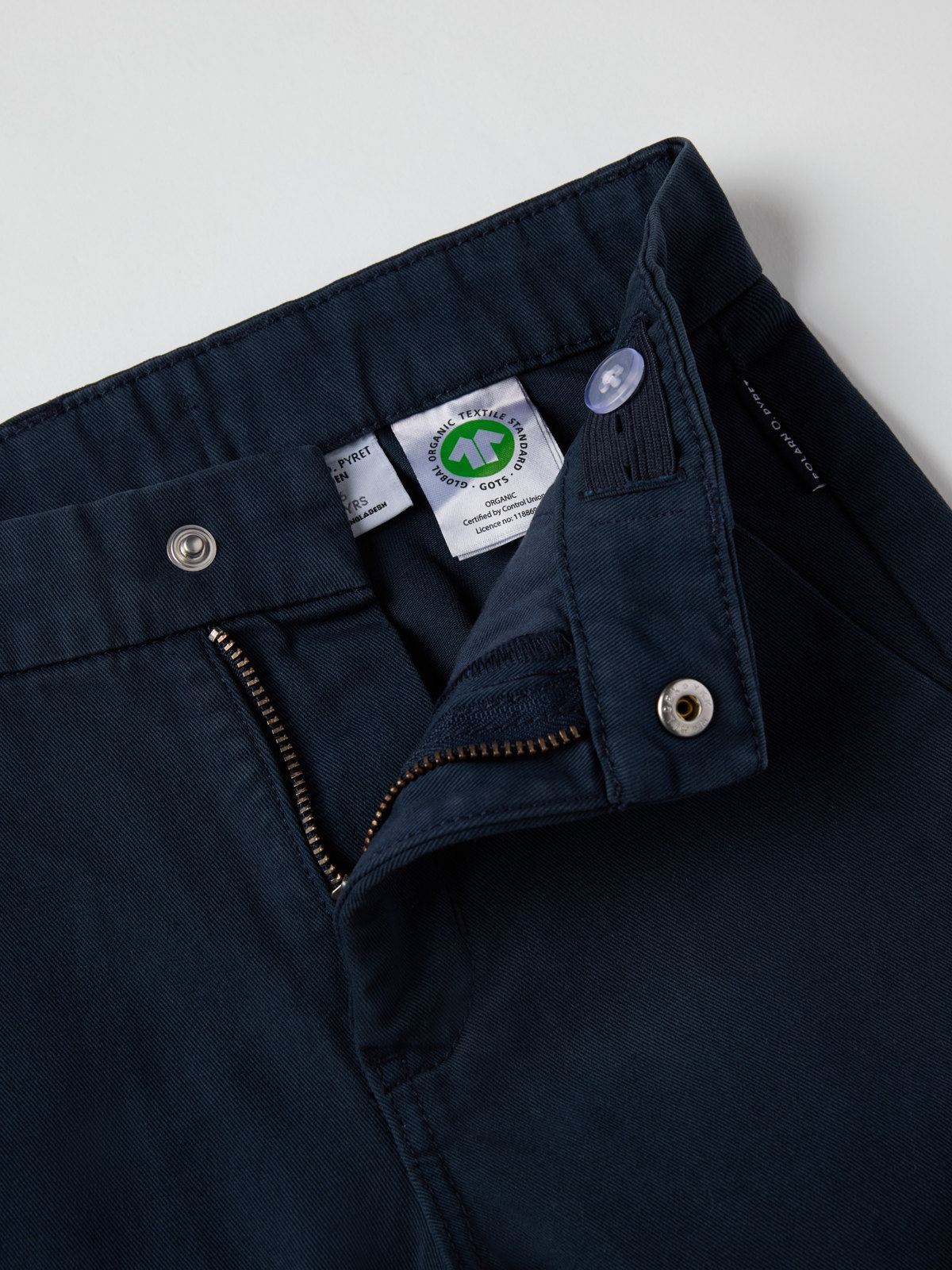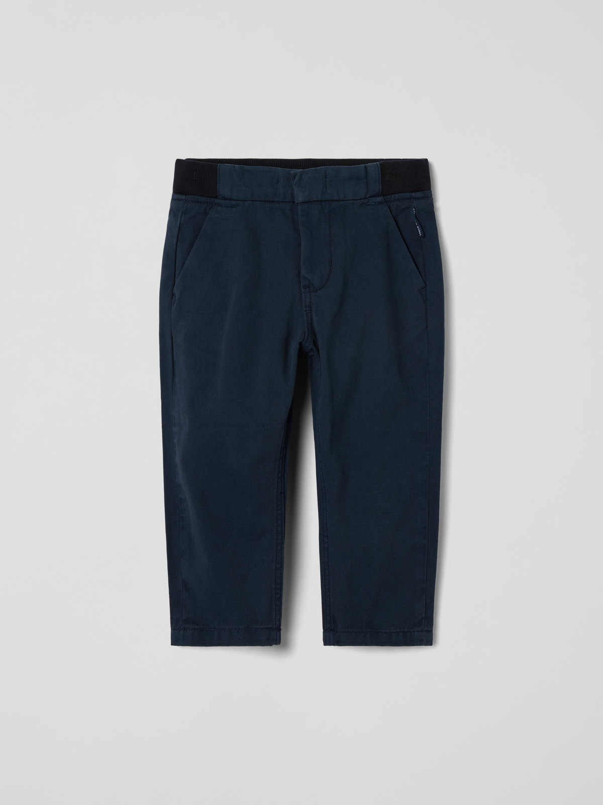 Chinos aus gewebter Bio-Baumwolle – die perfekte Hose im Alltag und zum Fest! Die Hose hat zwei Taschen vorne und eine Gesäßtasche sowie einen elastischen Bund, der sich mit Knopflochgummi regulieren lässt.