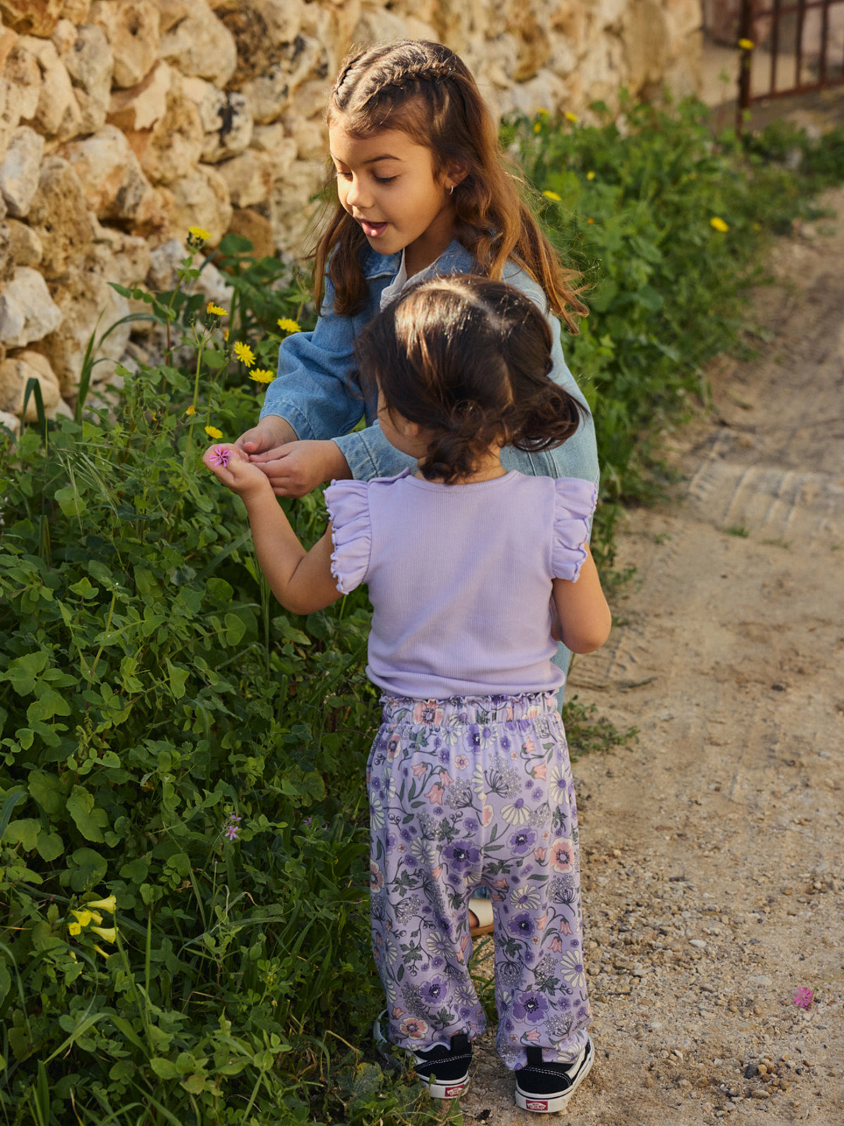Geblümte Hose aus dünnem und kühlem Trikot aus Ecovero™ Viscose für Babys – perfekt für warme Tage! Die Hose hat einen elastischen Bund und elastische Beinabschlüsse für eine bequeme Passform.