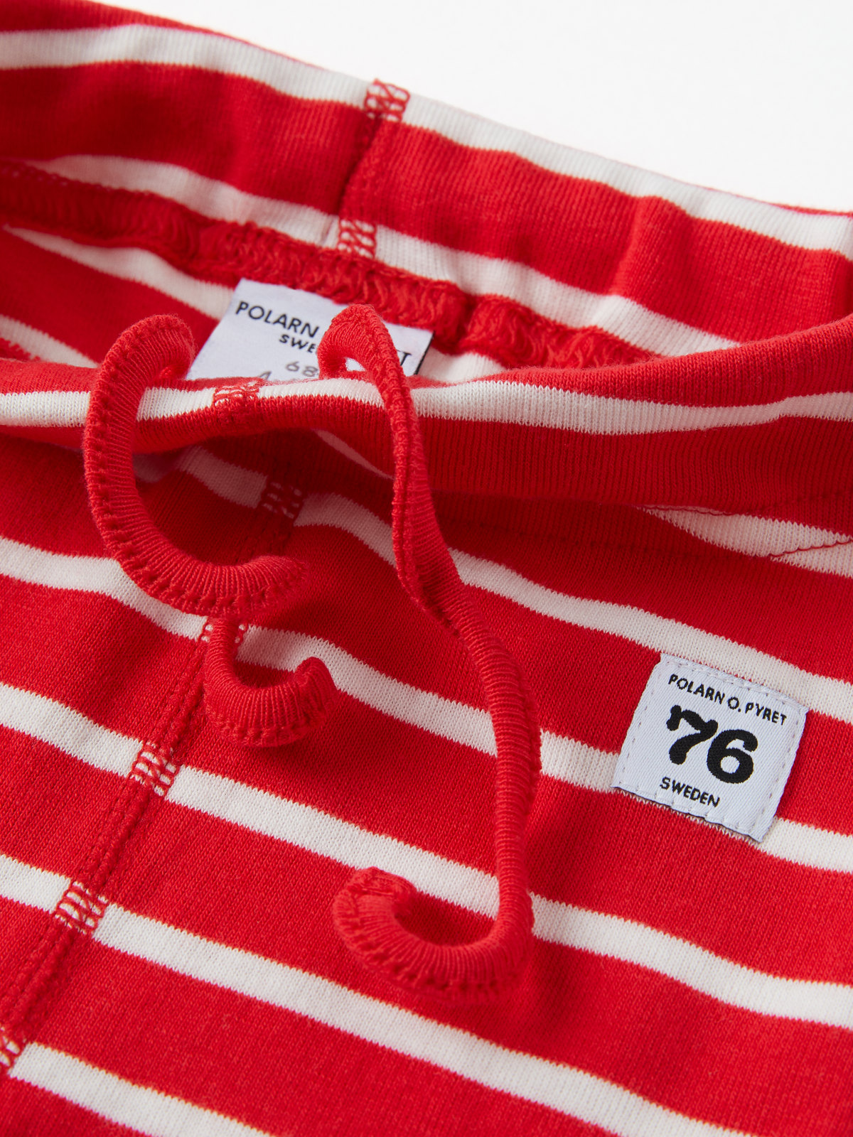 Gestreifte Hose aus 100 % Bio-Baumwolle für Babys. Die Hose in unserem klassischen Streifenmuster ist mit einem elastischen Bund versehen, der mit einem Bindeband reguliert werden kann. Die Beinabschlüsse sind mit weichen Bündchen besetzt.