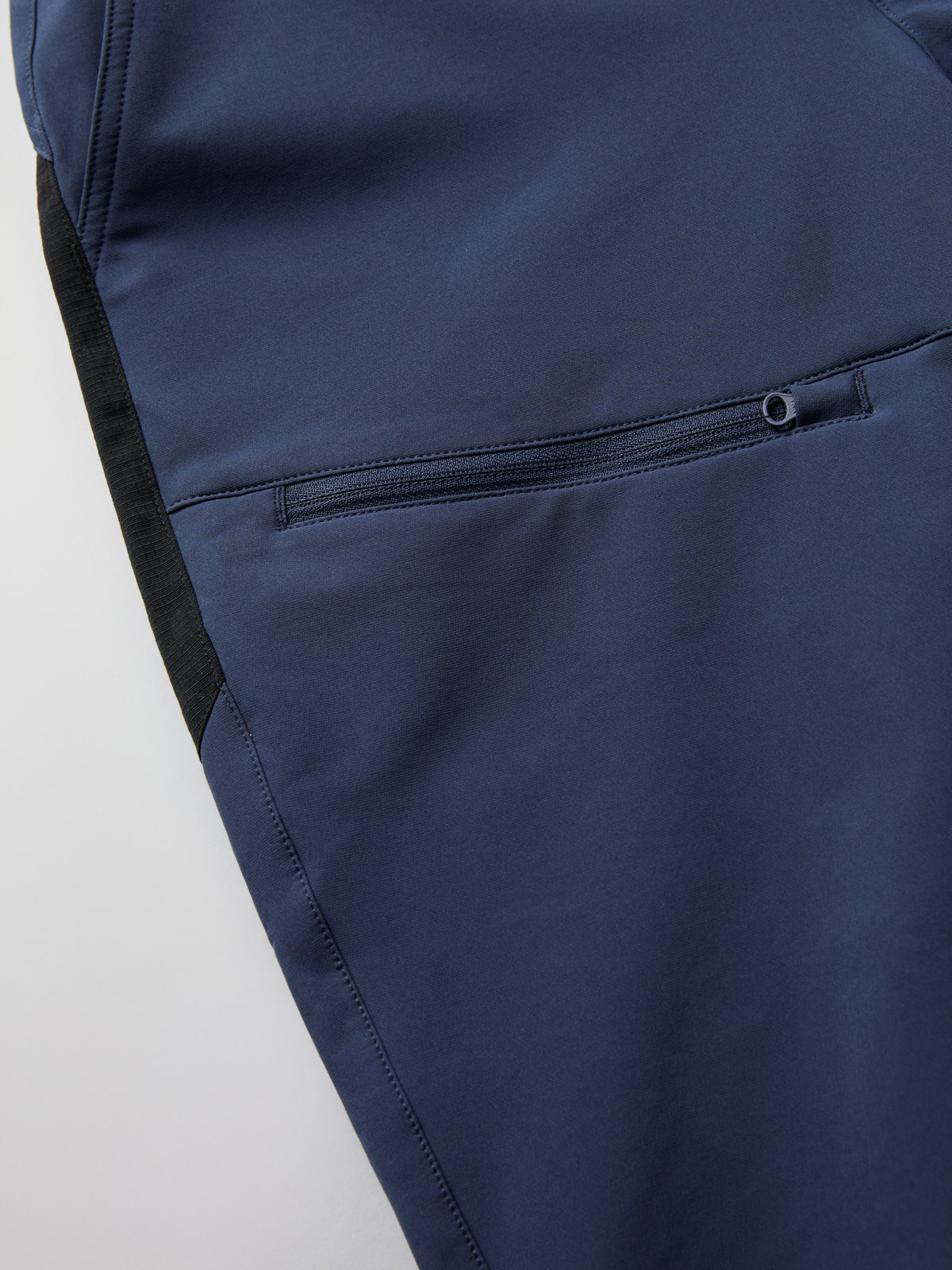 Die Hose hat zwei Taschen vorne und eine Beintasche mit Reißverschluss.