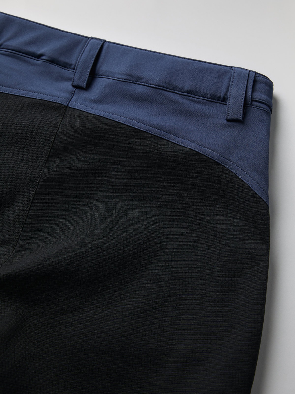 Beinabschlüsse und Bund sind mit Klettverschluss verstellbar. Am Bund hat sie außerdem Gürtelschlaufen.