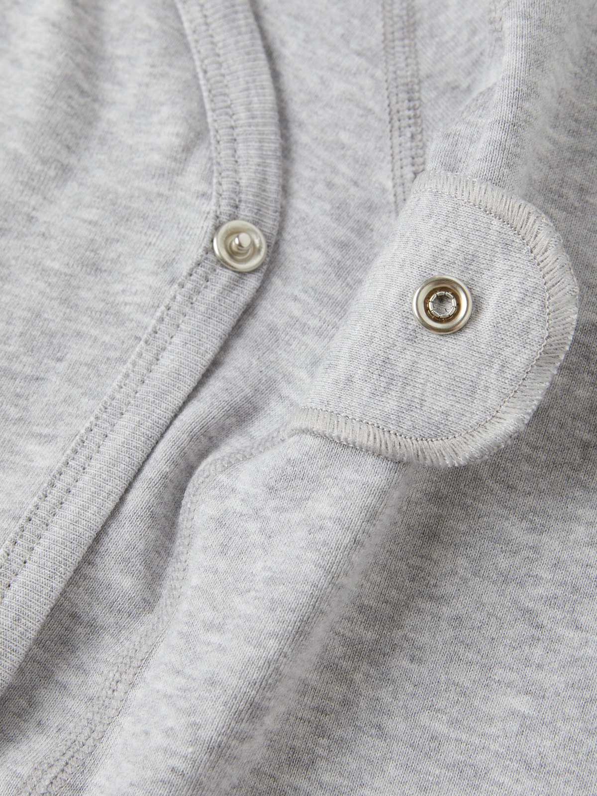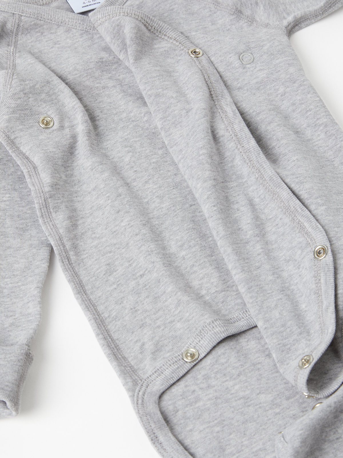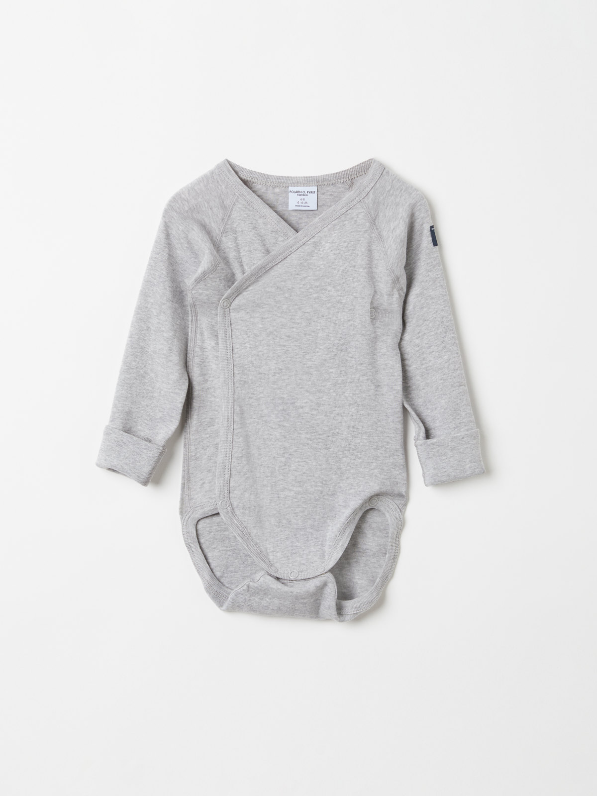 Wickelbody für Neugeborene aus Bio-Baumwolle. Der Body hat unser klassisches Streifenmuster und weiche Rippenbündchen an den Ärmelabschlüssen, die du herunterschlagen kannst, wenn dein Baby ein wenig gewachsen ist. Die Druckknöpfe entlang der Wickelöffnung und im Schritt erleichtern das Anziehen und Wickeln.