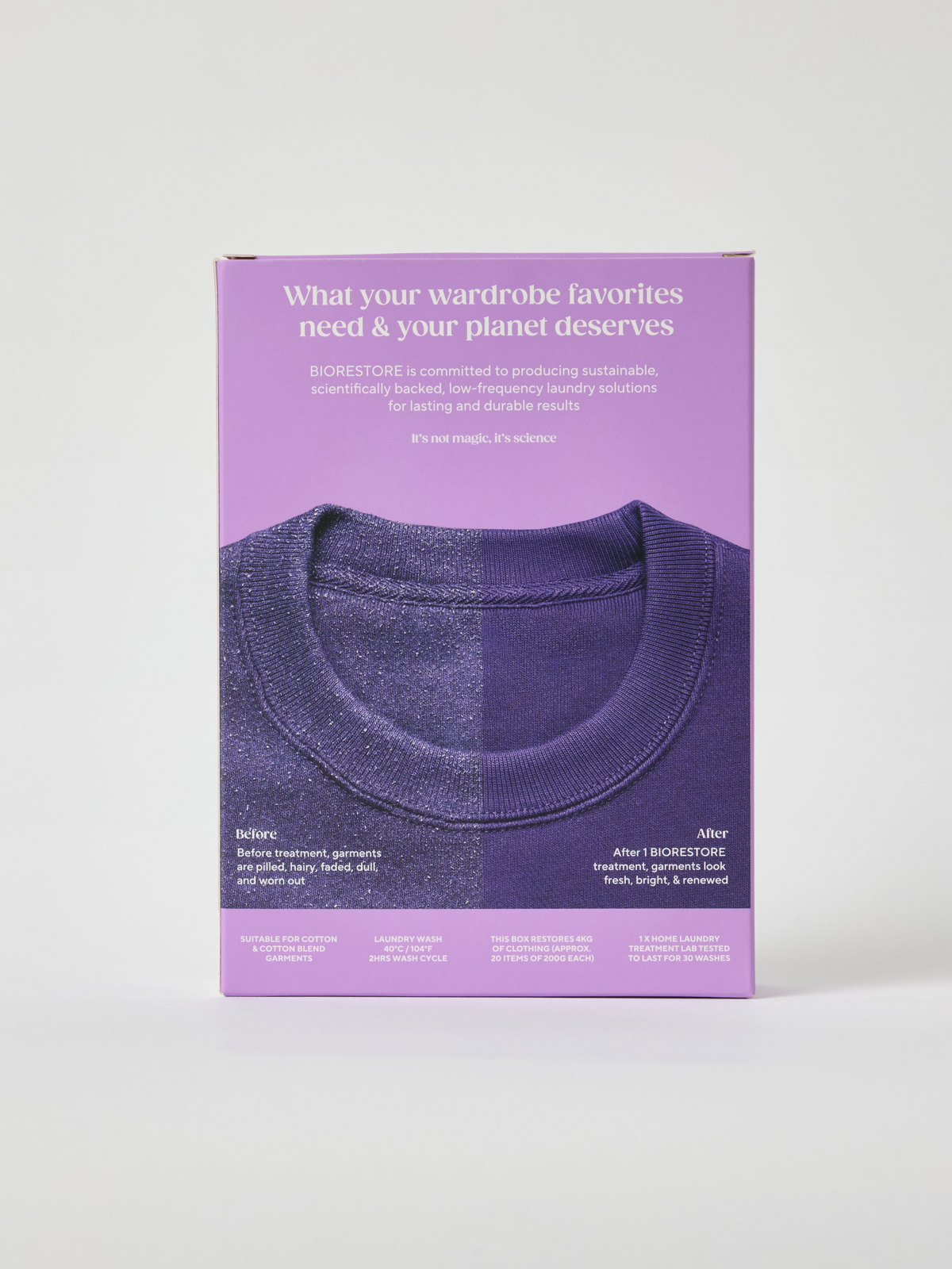 Neue Formel – verleihe bis zu 4 kg Kleidung neues Leben! Biorestore ist ein Enzymmittel, das zusammen mit Wasser und der Bewegung der Waschmaschine Farben auffrischt, Drucke erneuert und die Oberfläche der Kleidung glättet. Eine einfache Behandlung lässt deine Lieblingsstücke* wie neu aussehen.