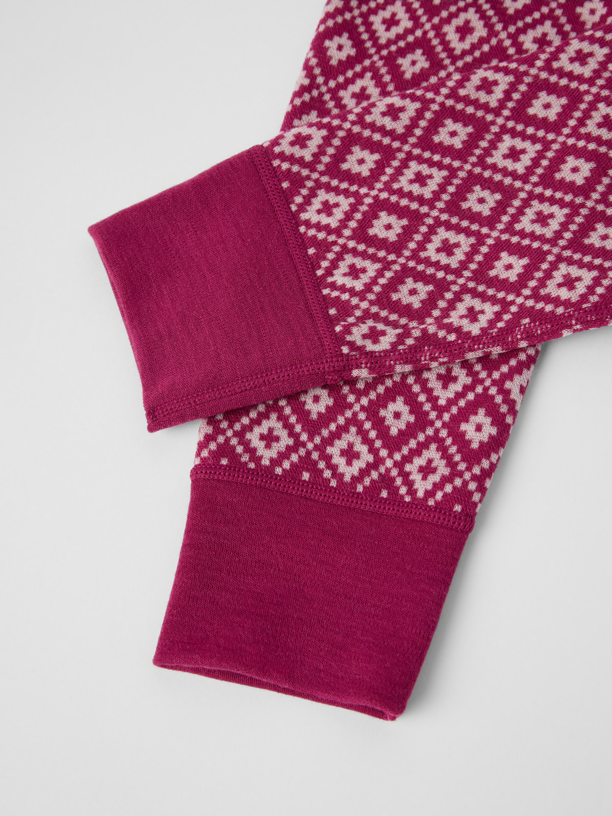 Jacquardgemusterte Hose aus weicher und wärmender Merinowolle – perfekt als erste Schicht unter der Oberbekleidung! Merinowolle hält auch im feuchten Zustand warm und hilft, die Körpertemperatur zu regulieren. Zudem ist sie unschlagbar weich auf der Haut. Kombiniere sie mit dem passenden Oberteil für ein komplettes Unterwäsche-Set an kalten Tagen im Schnee oder auf der Piste.