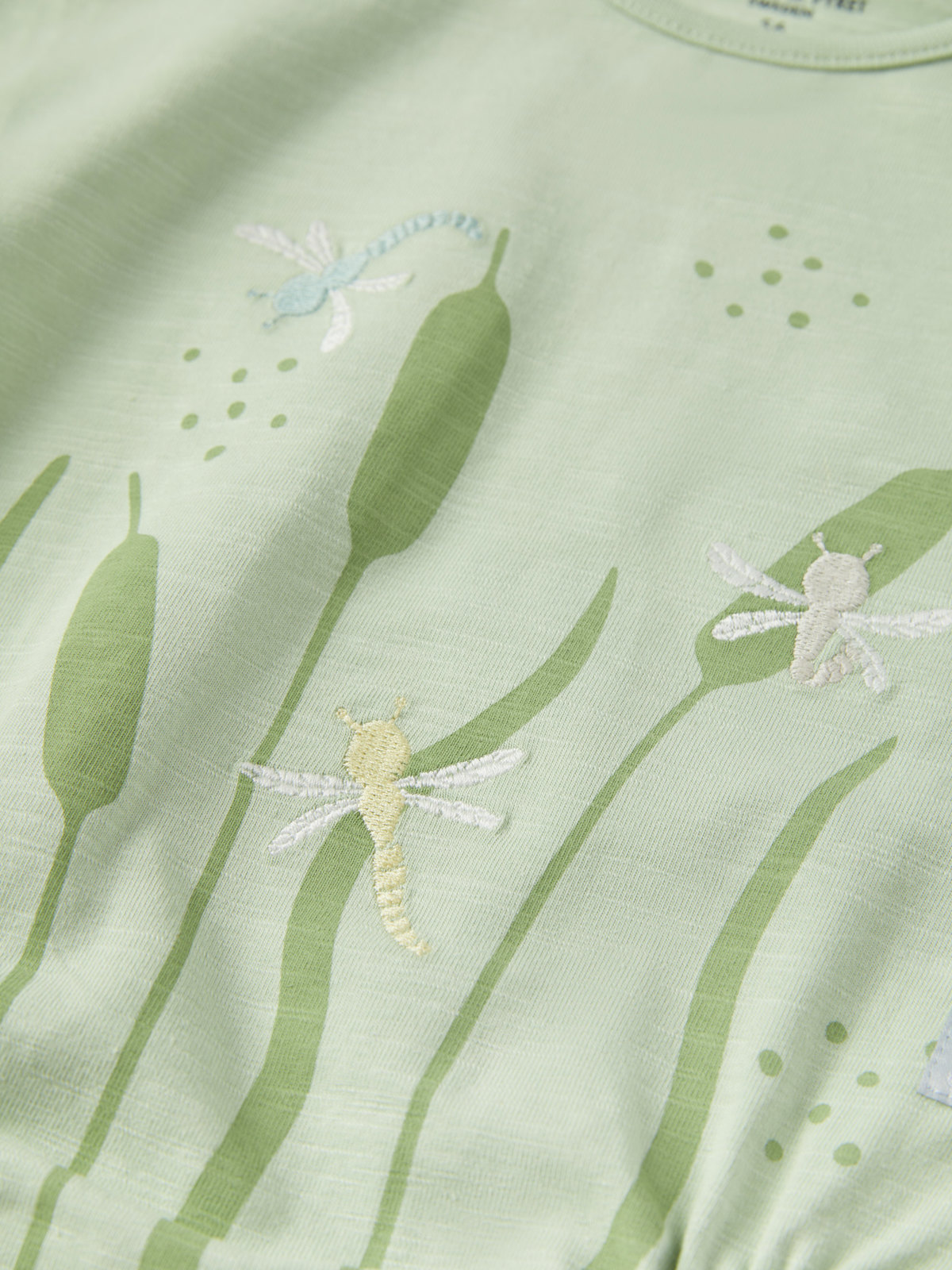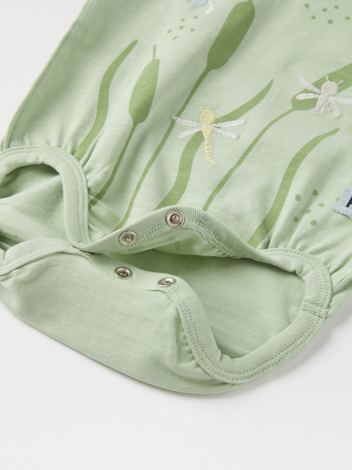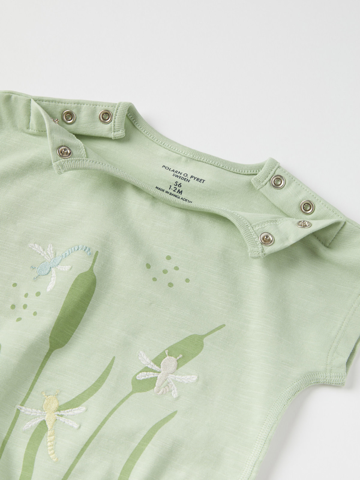 Der Body ist mit einer bezaubernden Stickerei in Form von Libellen verziert. Er hat besonders weiche, flache Nähte, die sanft zu empfindlicher Haut sind.