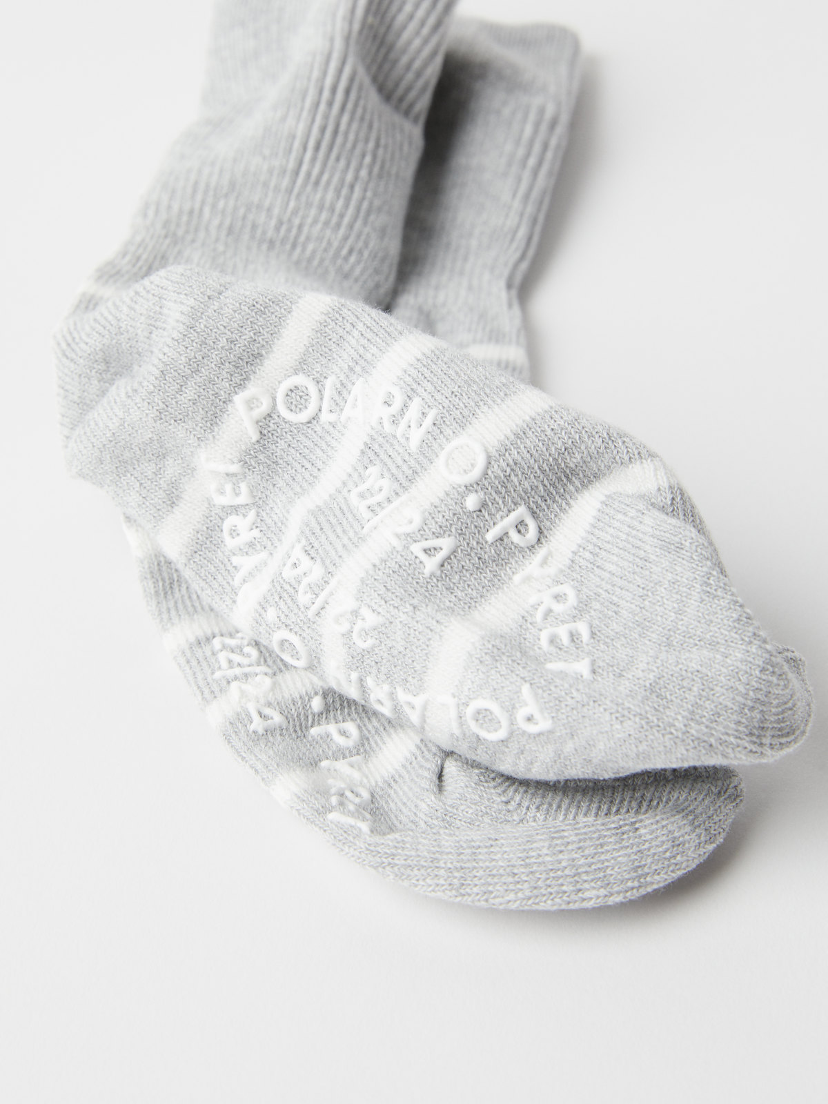 Zweier-Pack Söckchen mit rutschhemmenden Noppen Die Söckchen aus Bio-Baumwolle haben unser klassisches Streifenmuster. Die Bündchen können umgeschlagen werden. Dieser Artikel ist Teil unseres 3-für-2-Angebots. Es kann nicht mit anderen Angeboten kombiniert werden.