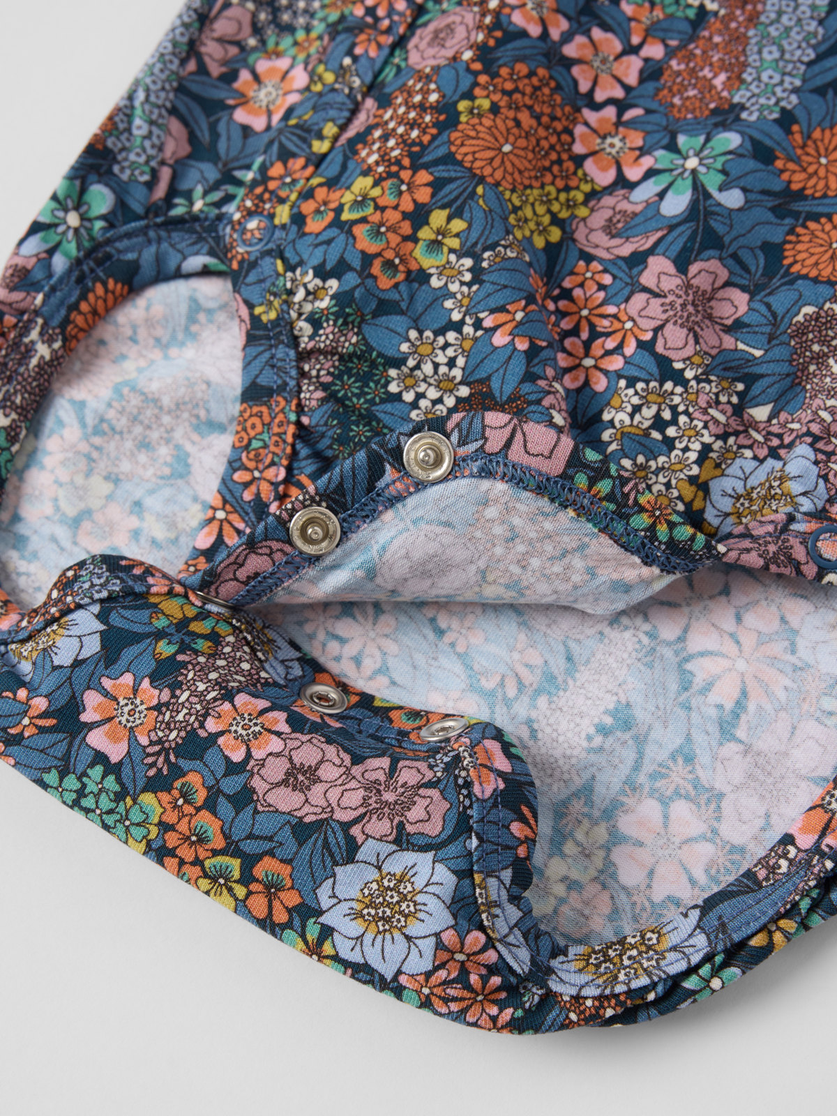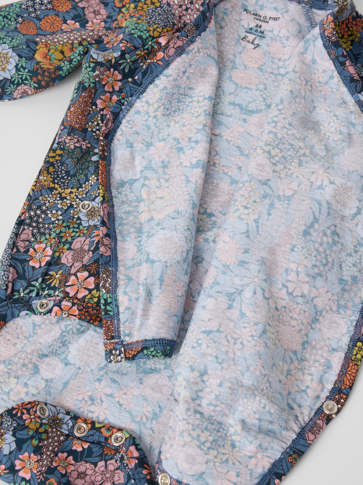 Wickelbody aus Bio-Baumwolle für Babys – Teil unserer exklusiven Designkooperation mit Liberty Fabrics. Der Body ist rundum mit einem der ikonischen Blumenmuster von Liberty Fabrics bedruckt und in limitierter Auflage erhältlich. Mit besonders weichen Nähten, sanft zur empfindlichen Babyhaut. Die Wickelöffnung mit Druckknöpfen macht das Umziehen besonders einfach.