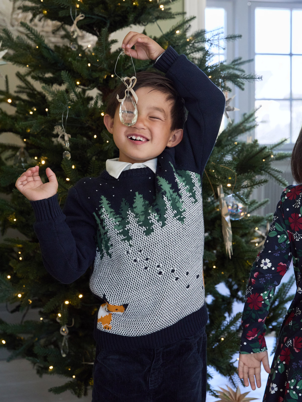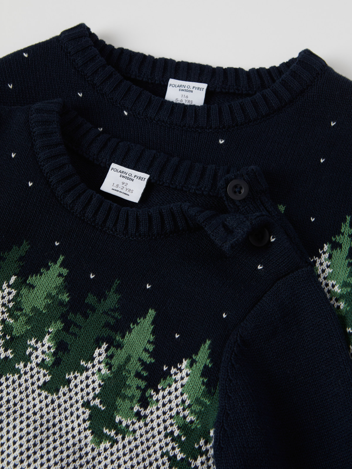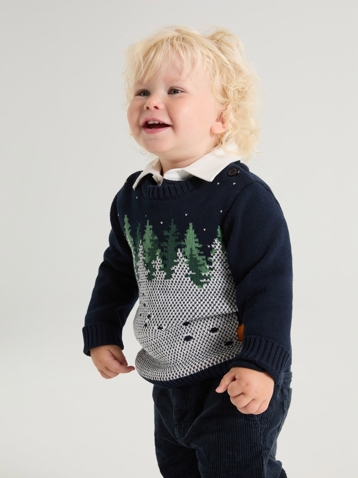 Oberteil aus Jacquardstrick mit winterlichem Muster aus 100 % Bio-Baumwolle. Der ultimative Weihnachtspullover!