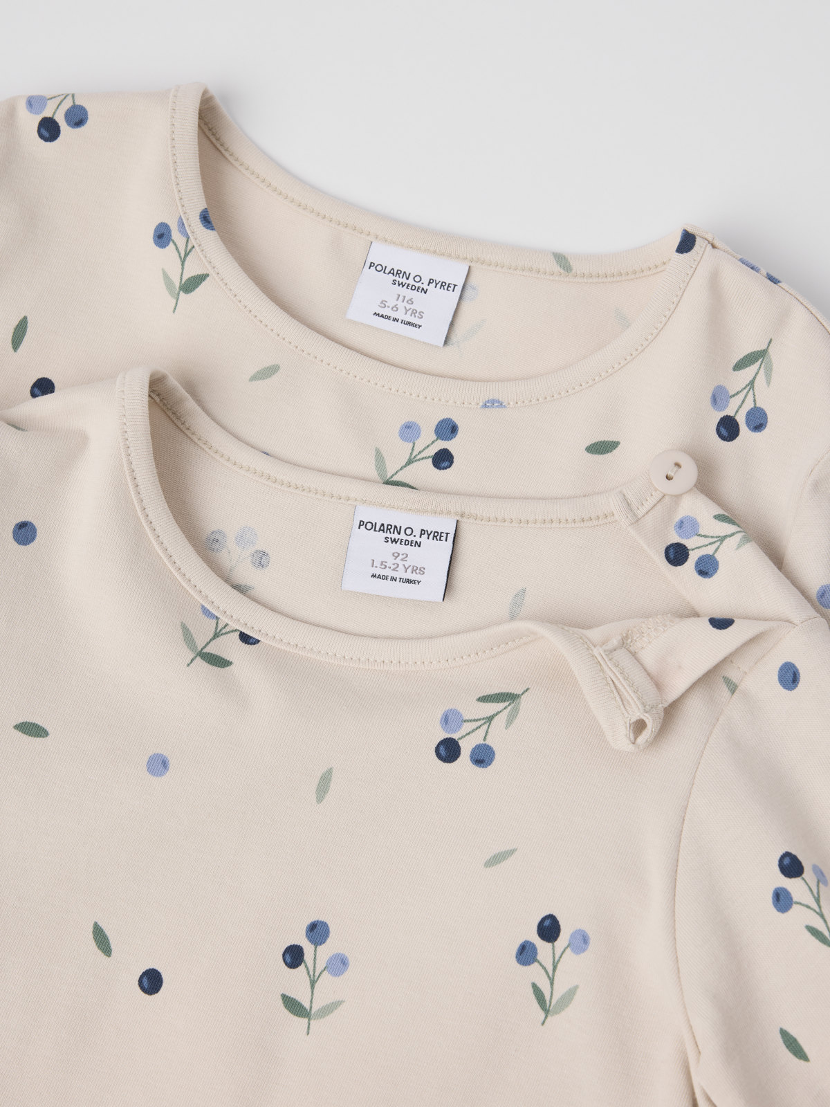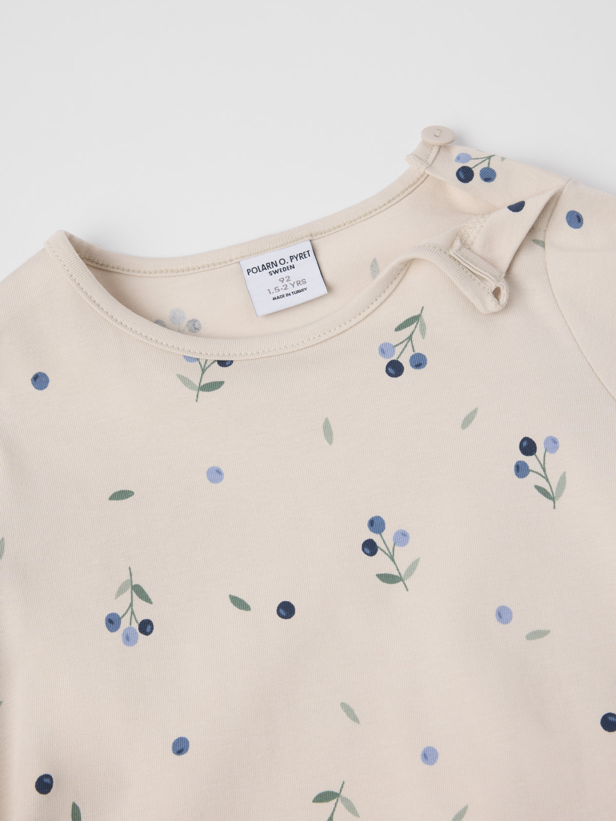 Die Größen 86-92 werden an einer Schulter mit einem Knopf geschlossen, um das An- und Ausziehen zu erleichtern.