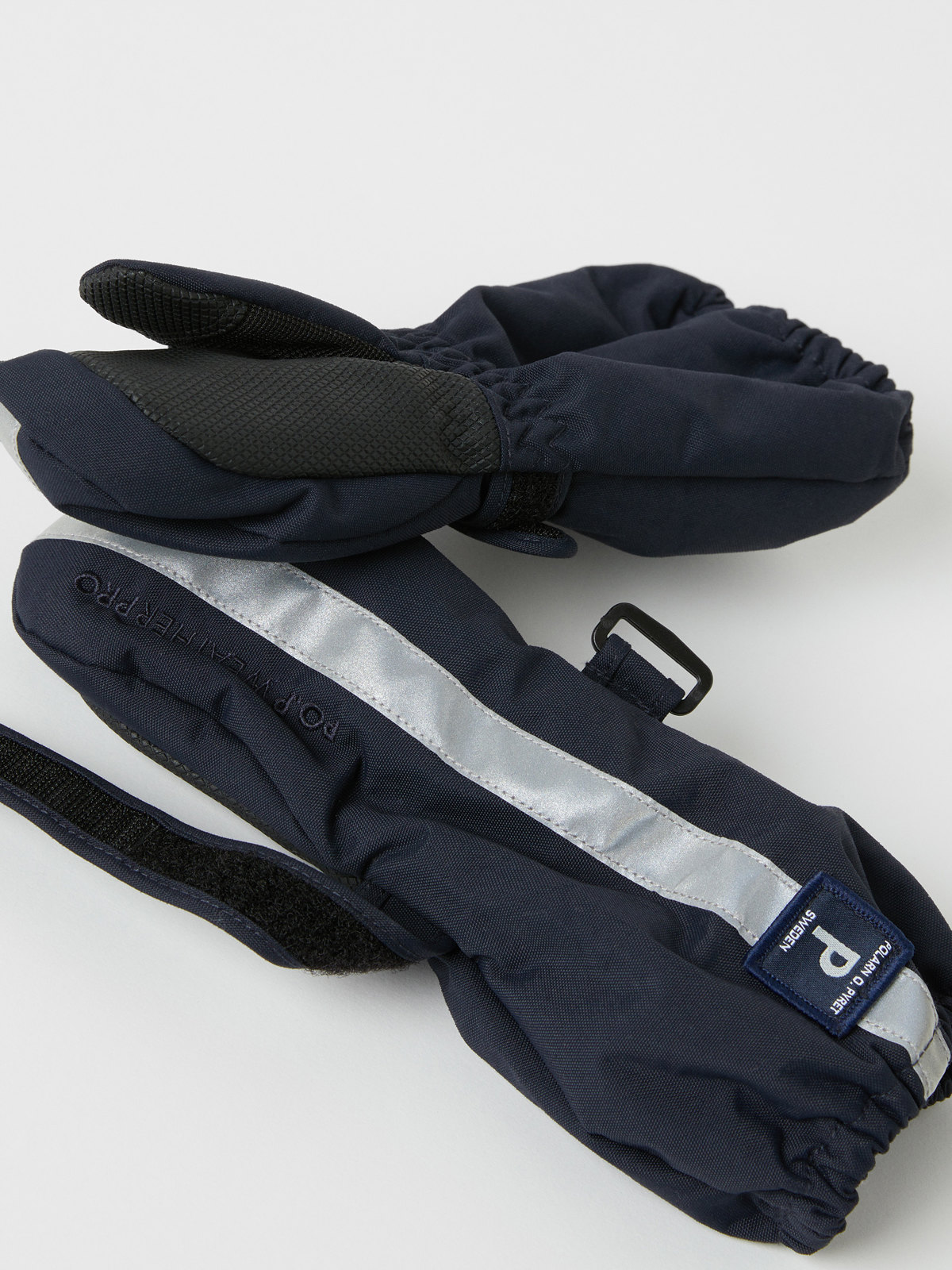 Die vorgeformten Fäustlinge mit weichem Fleecefutter bieten hohe Bewegungsfreiheit. Der lange Schaft ist besonders weit gearbeitet, sodass er sich mühelos über die Hand ziehen und mit dem verstellbaren Riegel an den Umfang des Handgelenks anpassen lässt. Sie sind mit auffälligen Reflektoren auf der Oberseite und einer griffig gearbeiteten Handfläche versehen.