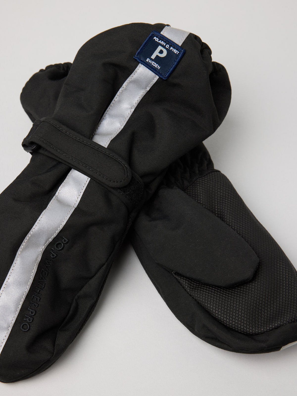 Die vorgeformten Fäustlinge mit weichem Fleecefutter bieten hohe Bewegungsfreiheit. Der lange Schaft ist besonders weit gearbeitet, sodass er sich mühelos über die Hand ziehen und mit dem verstellbaren Riegel an den Umfang des Handgelenks anpassen lässt. Sie sind mit auffälligen Reflektoren auf der Oberseite und einer griffig gearbeiteten Handfläche versehen.