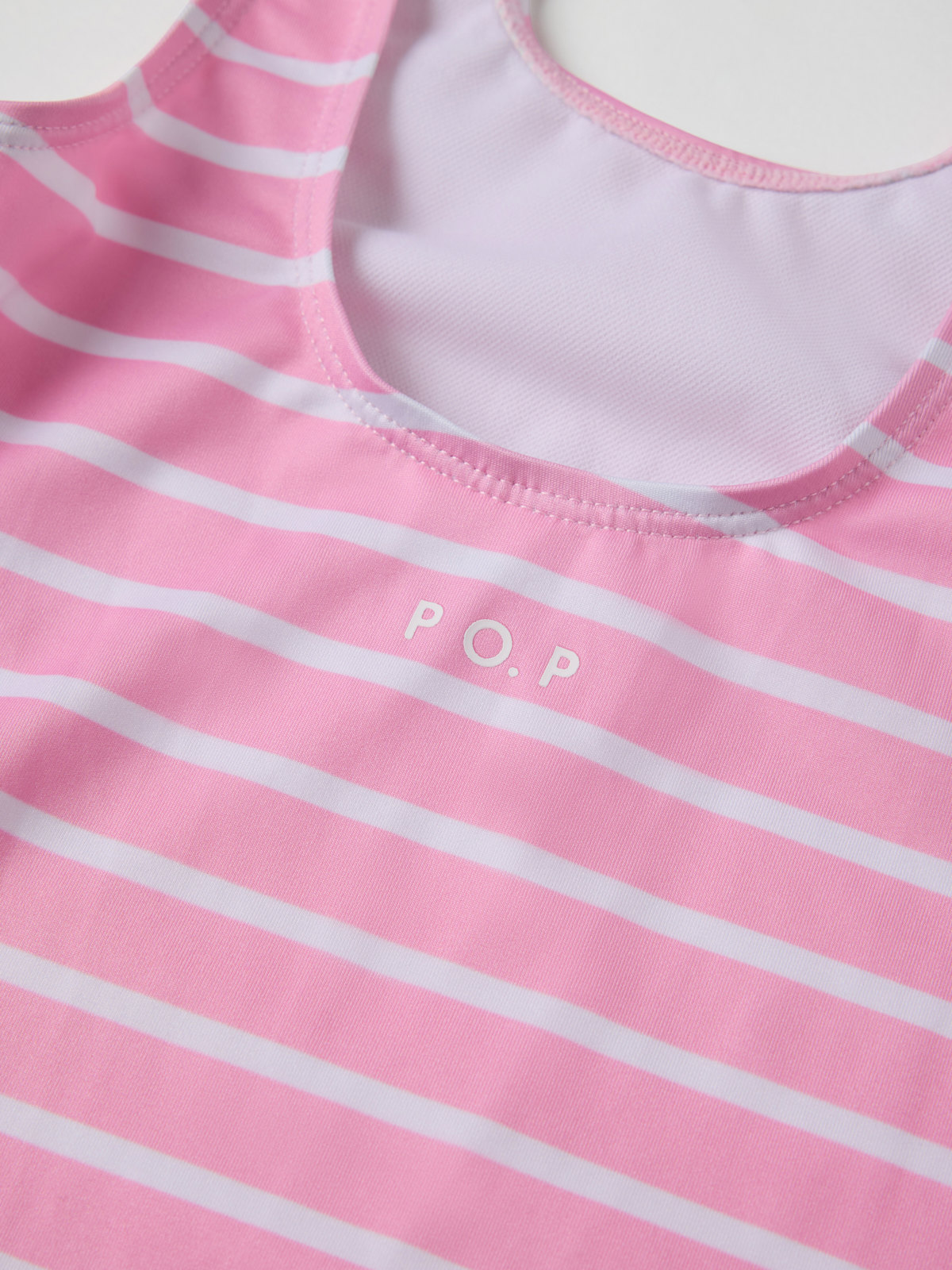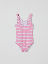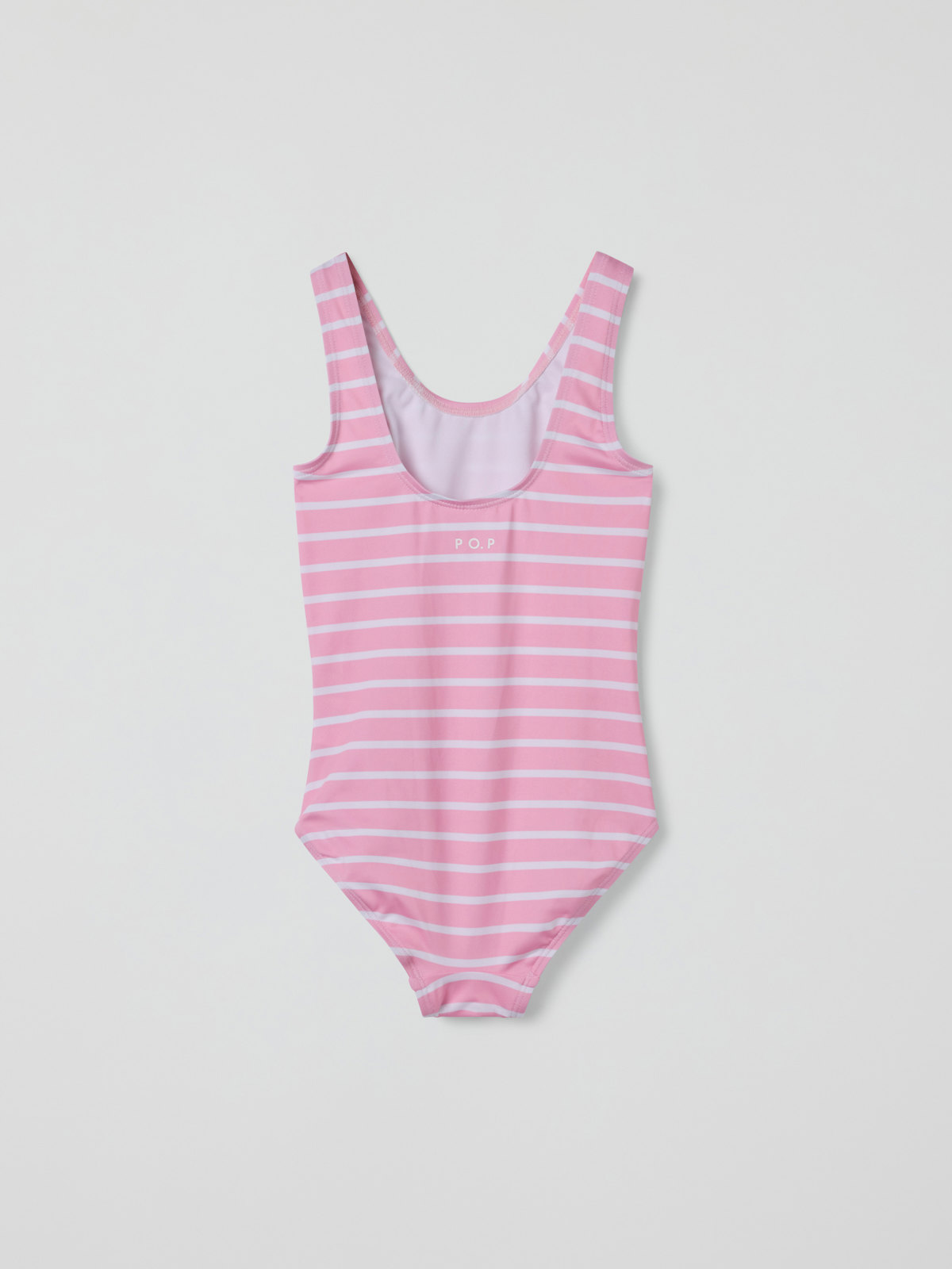 Gestreifter Badeanzug aus weichem und bequemem Material aus recyceltem Polyester. Der Badeanzug ist vollständig gefüttert und dank extra weicher Nähte besonders sanft zur Haut.