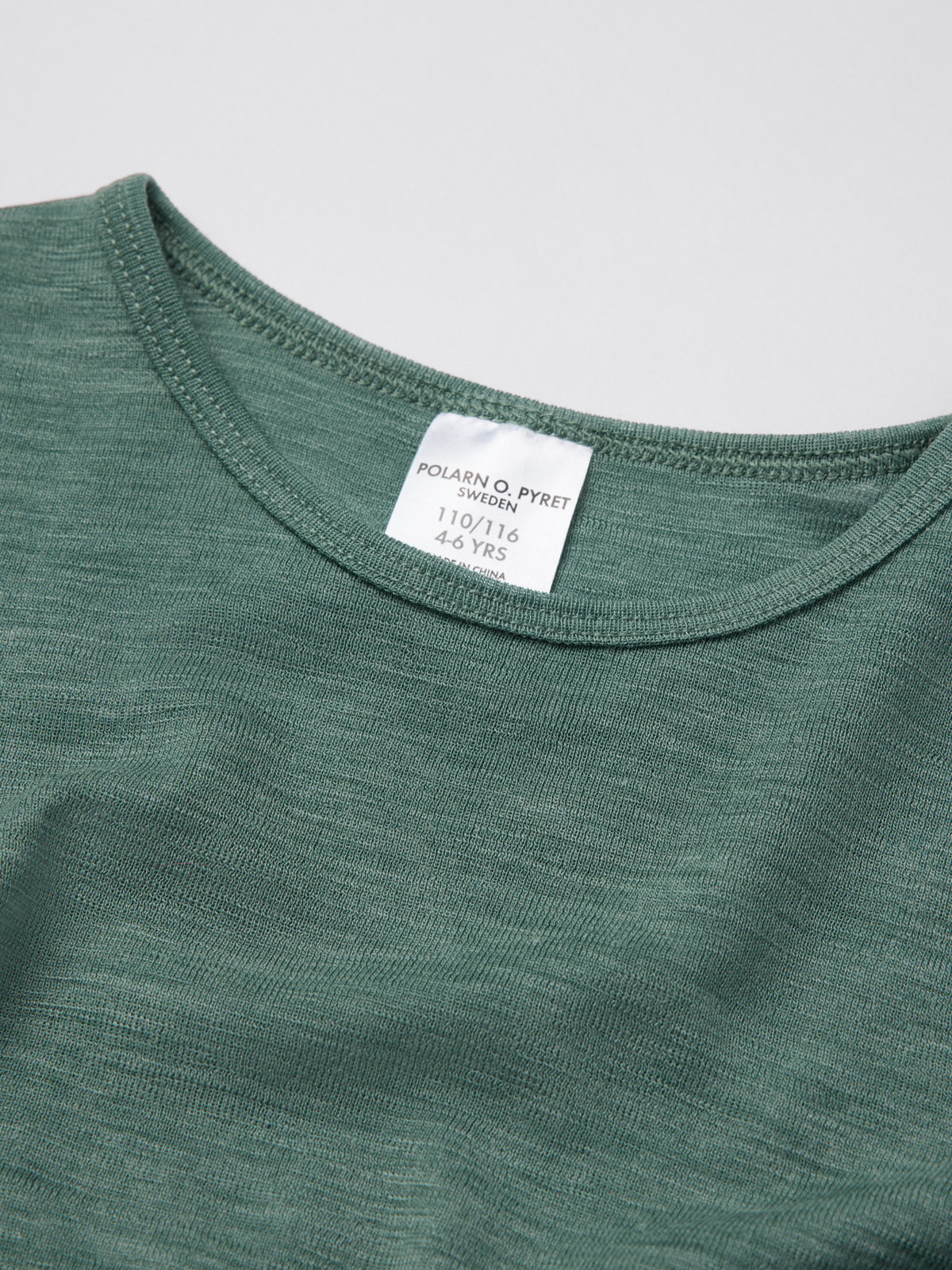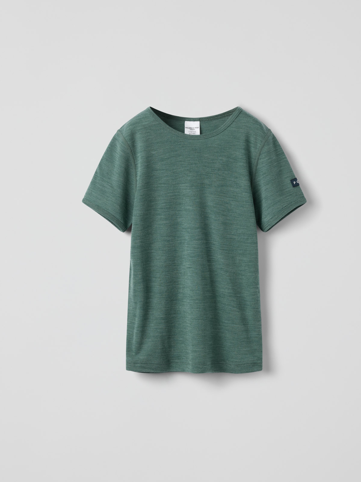 T-Shirt aus weicher, wärmender Merinowolle – perfekt als erste Schicht direkt auf der Haut. Merinowolle wärmt auch, wenn sie feucht geworden ist und trägt zur Regulierung der Körpertemperatur bei. Das T-Shirt ist mit besonders weichen Nähten gearbeitet. Zusammen mit der dazugehörigen langen Unterhose wird daraus ein tolles Funktionsunterwäsche-Set für kalte Wintertage.