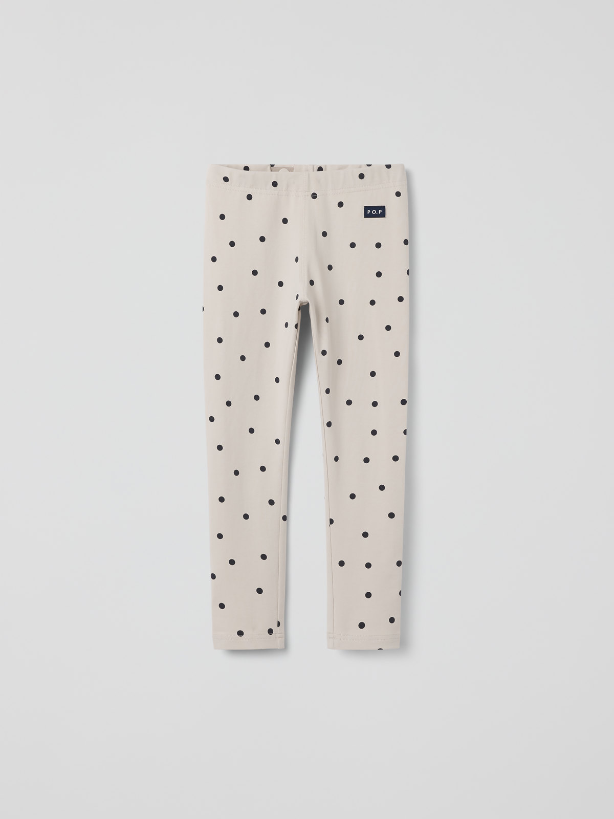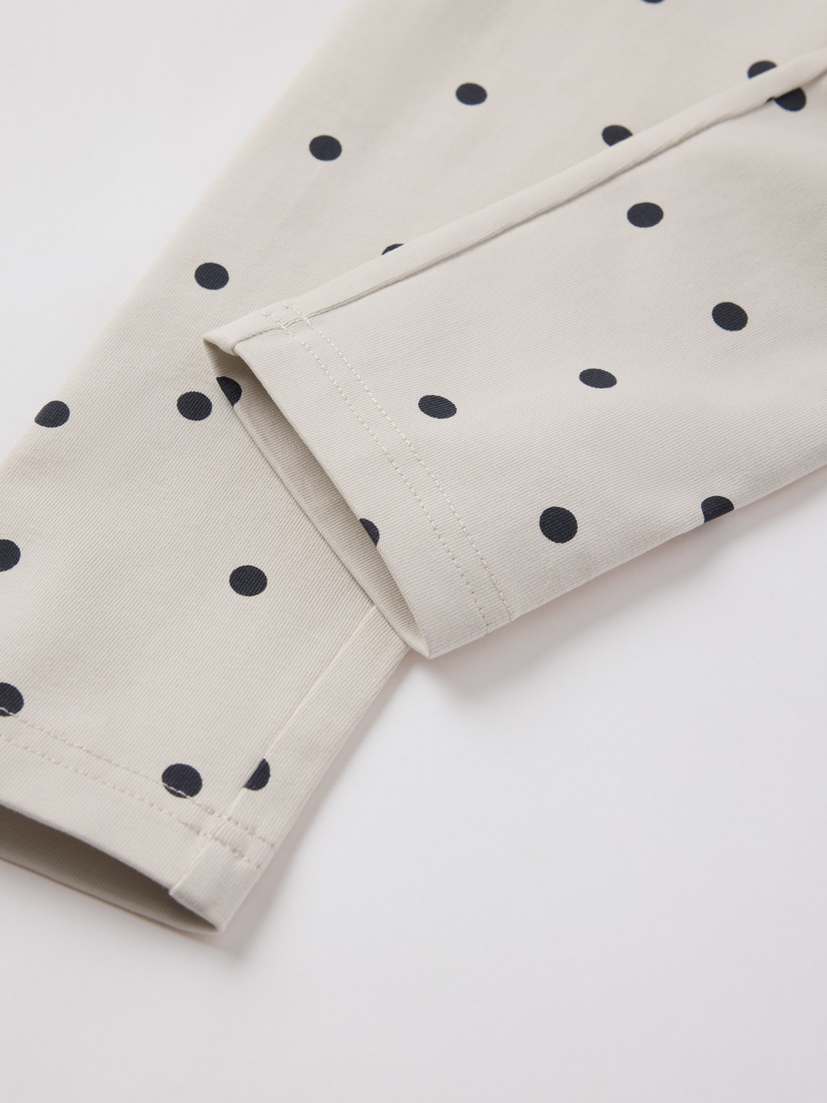 Gepunktete Leggings aus weichem Bio-Baumwolljersey – eines unserer beliebtesten Produkte! Der Bund kann mit einem Knopflochgummi reguliert werden.
