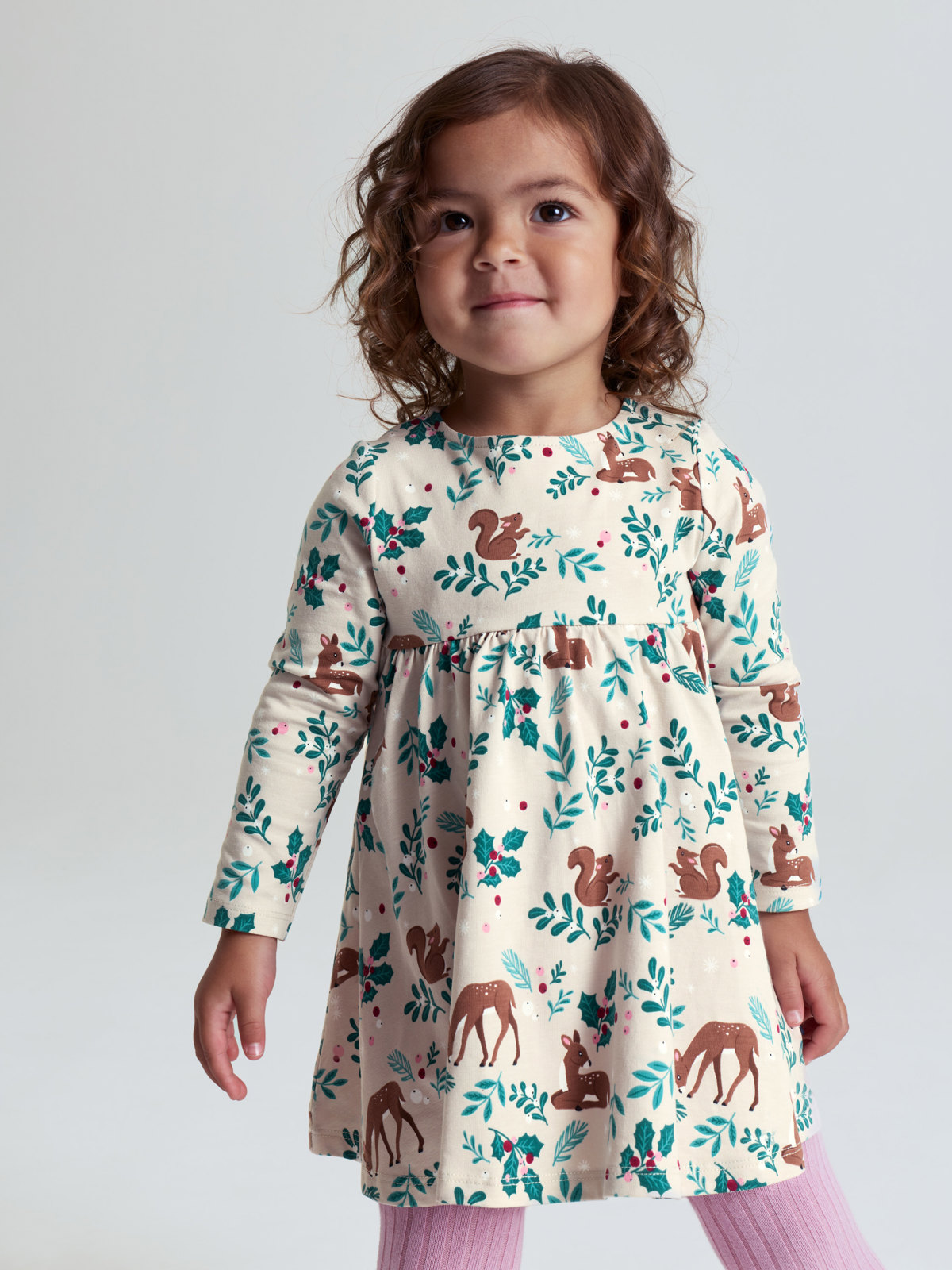 Unser klassisches Drehkleid ist ein Must-have in der Kindergarderobe! Das Kleid aus weichem Bio-Baumwolltrikot hat ein besonders weites Rockteil, so dass es beim Drehen schön schwingt. Das Kleid wird im Rücken mit einer Knopfleiste geschlossen.