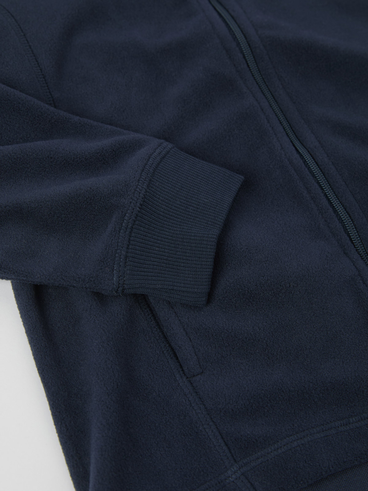 Jacke aus weichem, kuscheligem Fleece mit Eingrifftaschen und elastischen Ärmelabschlüssen. Die Jacke wird aus recyceltem Polyester gefertigt. Dieses Material leitet Feuchtigkeit ab, damit Kinder schön warm und trocken bleiben. Der Reißverschluss ist oben mit einem Kinnschutz versehen, damit an Kinn und Wangen nichts kratzt.