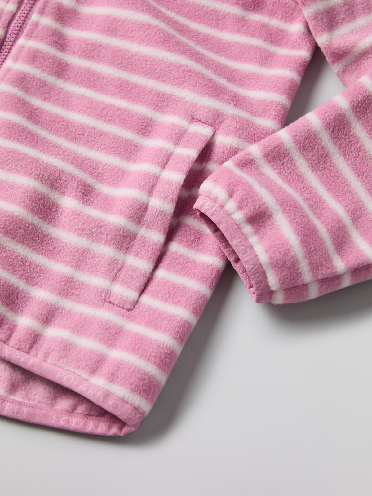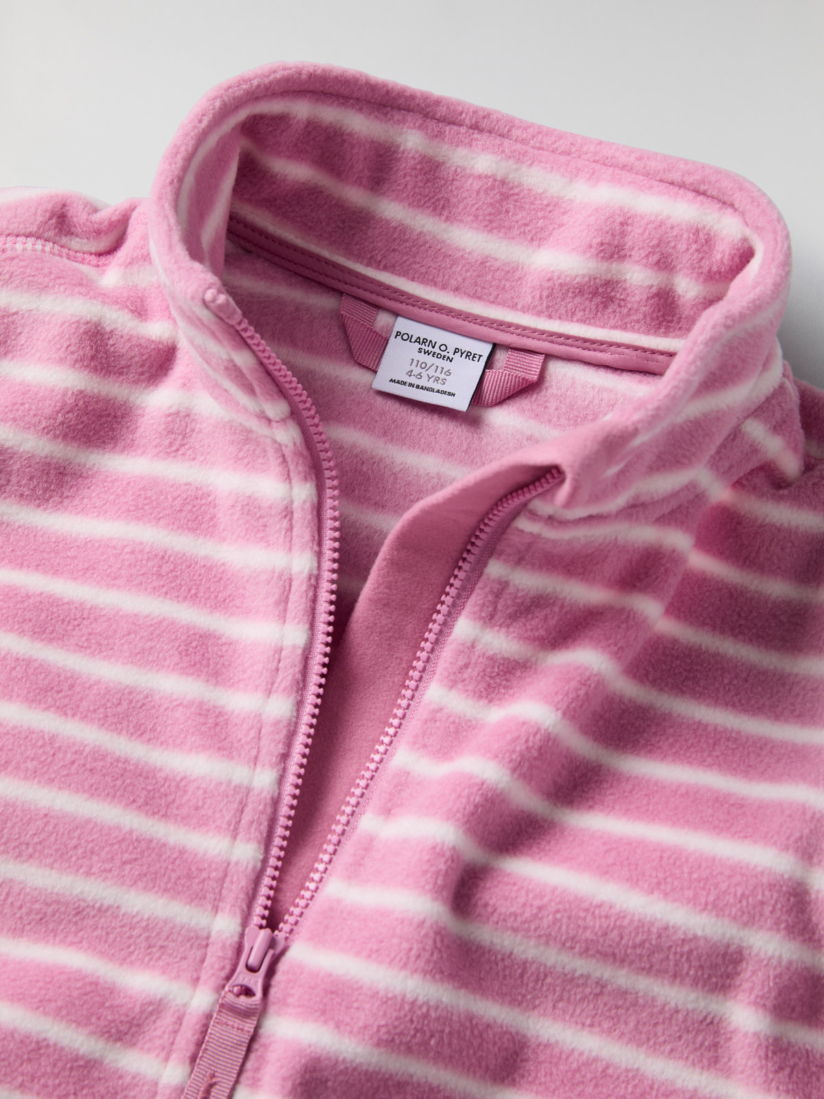 Gestreifte Jacke aus weichem, kuscheligem Fleece. Perfekt als wärmende Schicht unter der Outdoor-Bekleidung bei Ausflügen im Herbst und im Frühling, aber auch als reine Outdoor-Jacke bei mildem Wetter geeignet.