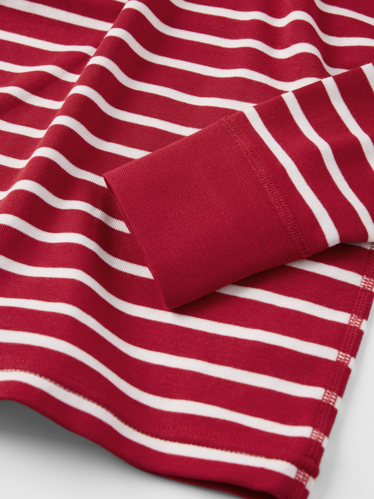 Rippenshirt aus 100% weichem Bio-Baumwolltrikot. Das Shirt in unserem klassischen Streifenmuster hat weiche Rippenbündchen an Ausschnitt und Ärmelabschlüssen.