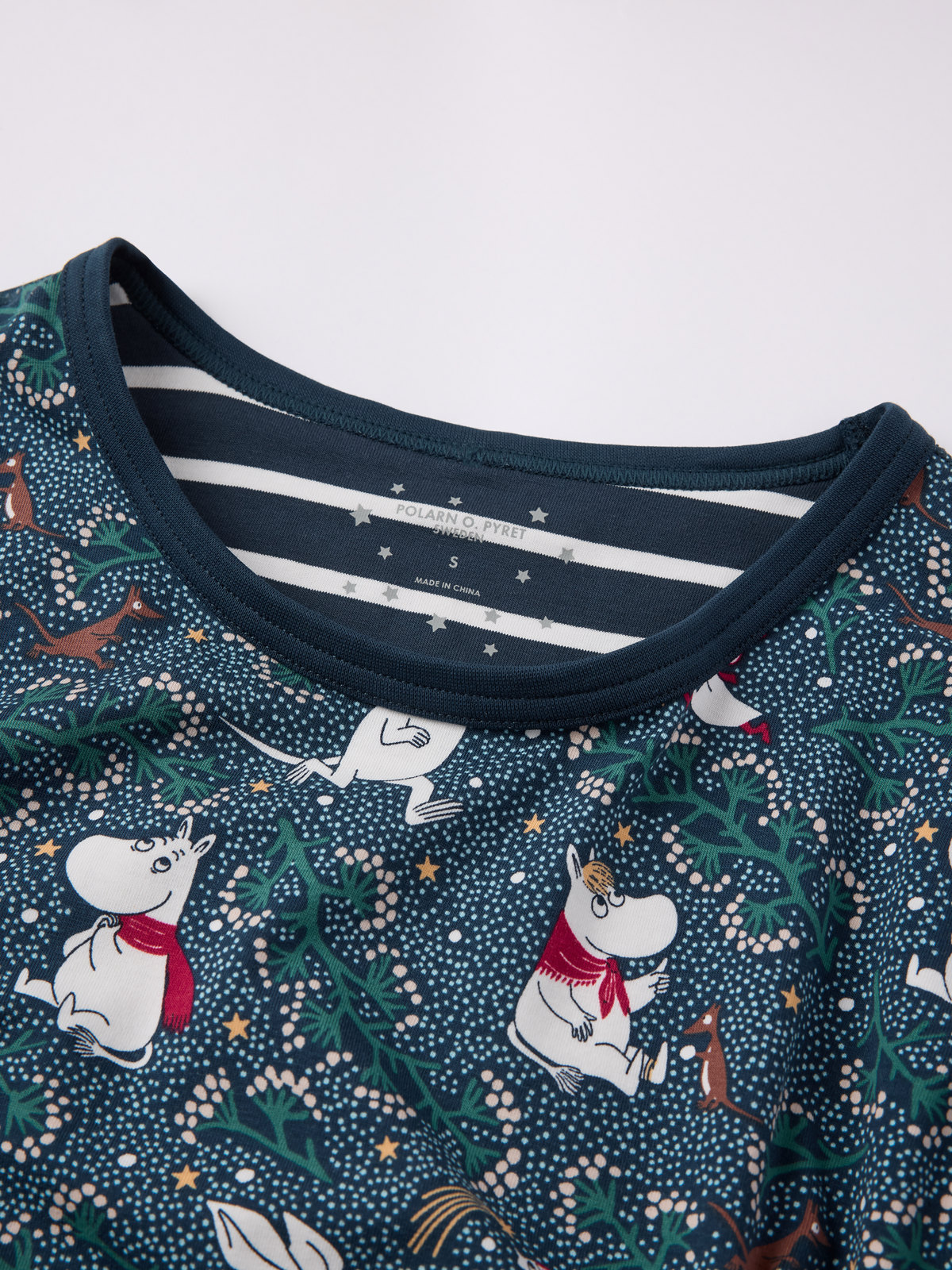 Wunderbar tragefreundliches Nachthemd aus Bio-Baumwolle für Erwachsene Teil unserer geliebten Design-Kooperation zum 80-jährigen Mumin-Jubiläum 2025. Das Nachthemd ist durchgehend mit den Mumintrollen von Tove Jansson bedruckt.