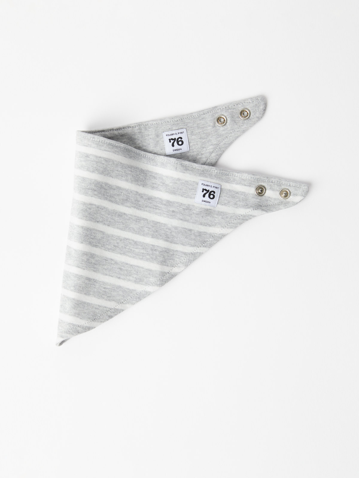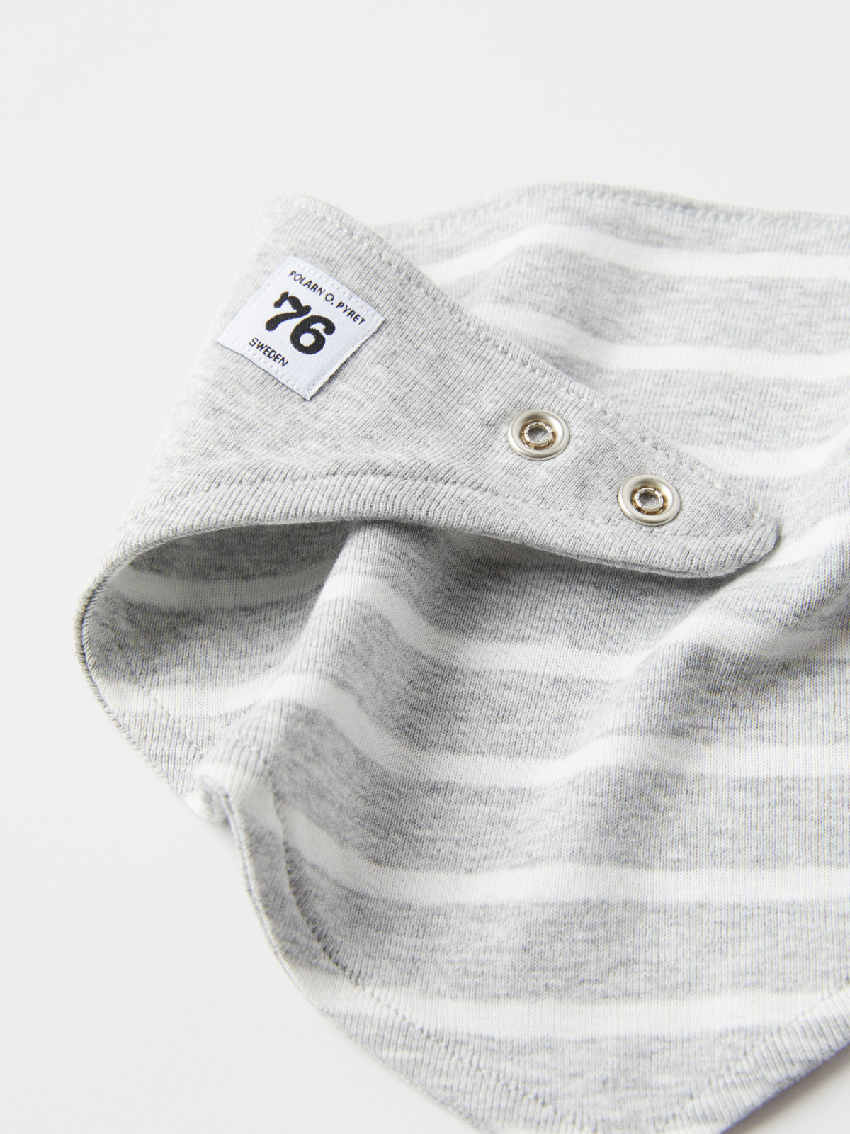 Wendehalstuch oder Sabberlätzchen aus weichem Trikotstoff für Babys. Das Halstuch oder Sabberlätzchen aus 100 % Bio-Baumwolle schützt die Kleidung. Eine Seite hat unsere klassischen Streifen, die andere ist einfarbig. Die Größe kann im Nacken mit Druckknöpfen angepasst werden.