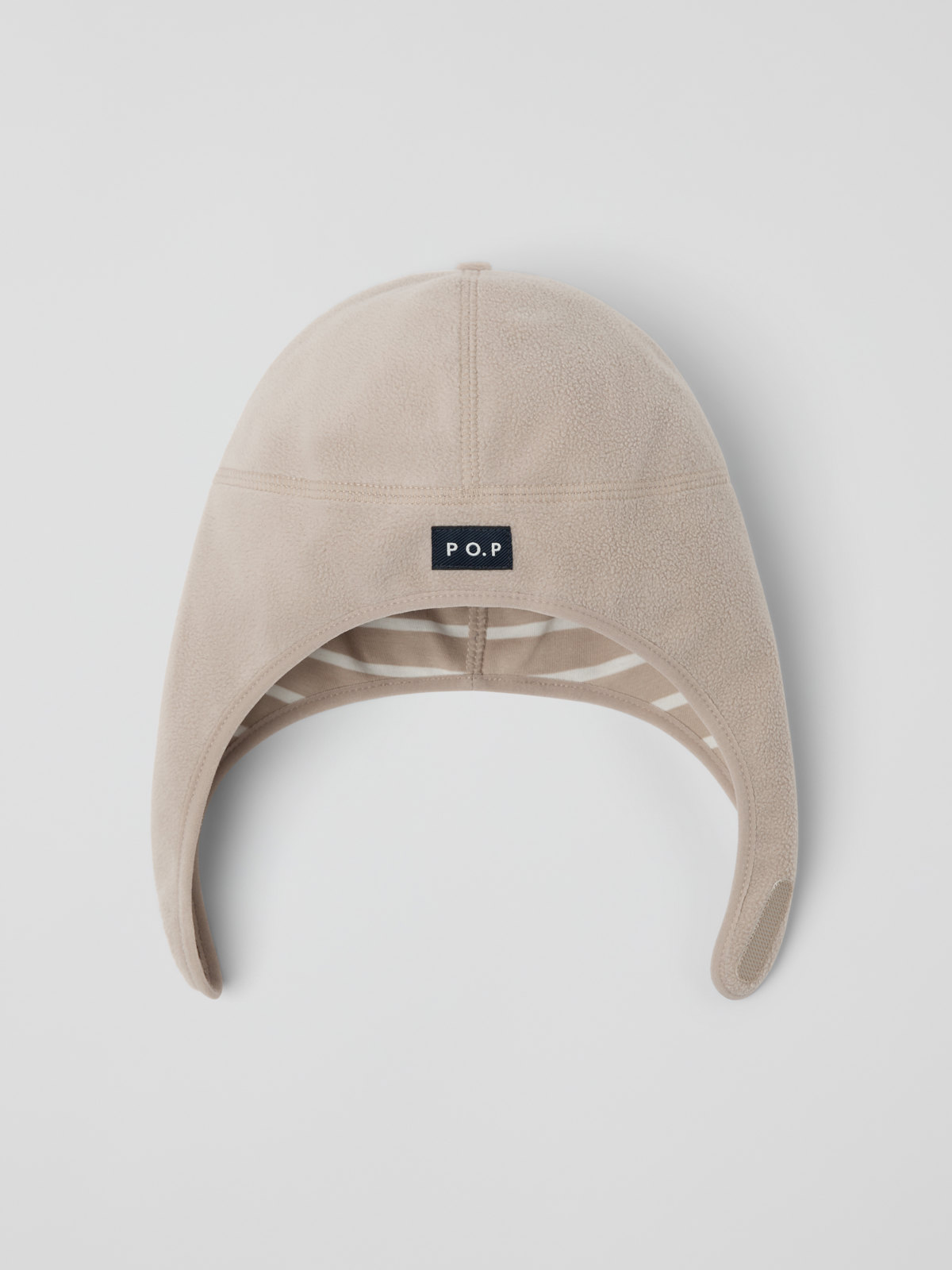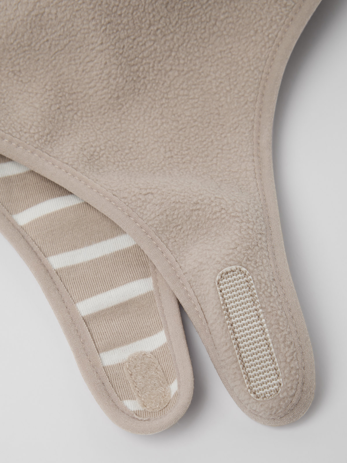 Winddichte und wasserabweisende Erstlingsmütze aus weichem Fleece für Babys. Die Mütze aus recyceltem Polyester ist innen mit weichem Bio-Baumwolltrikot mit unseren klassischen Streifen gefüttert. Die Mütze wird mit Klettverschluss unter dem Kinn geschlossen.