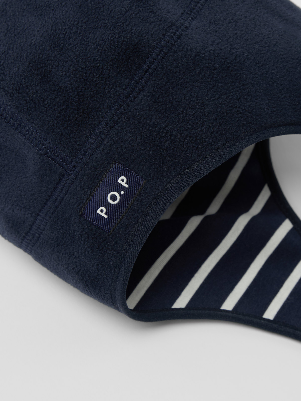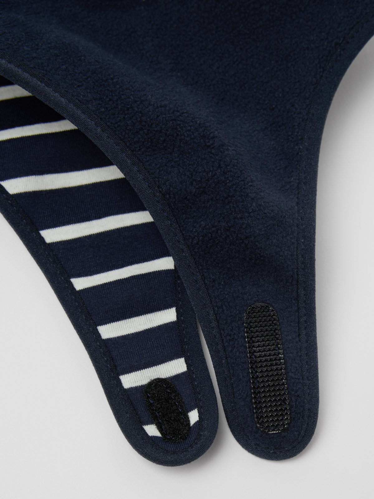 Winddichte und wasserabweisende Erstlingsmütze aus weichem Fleece für Babys. Die Mütze aus recyceltem Polyester ist innen mit weichem Bio-Baumwolltrikot mit unseren klassischen Streifen gefüttert. Die Mütze wird mit Klettverschluss unter dem Kinn geschlossen.