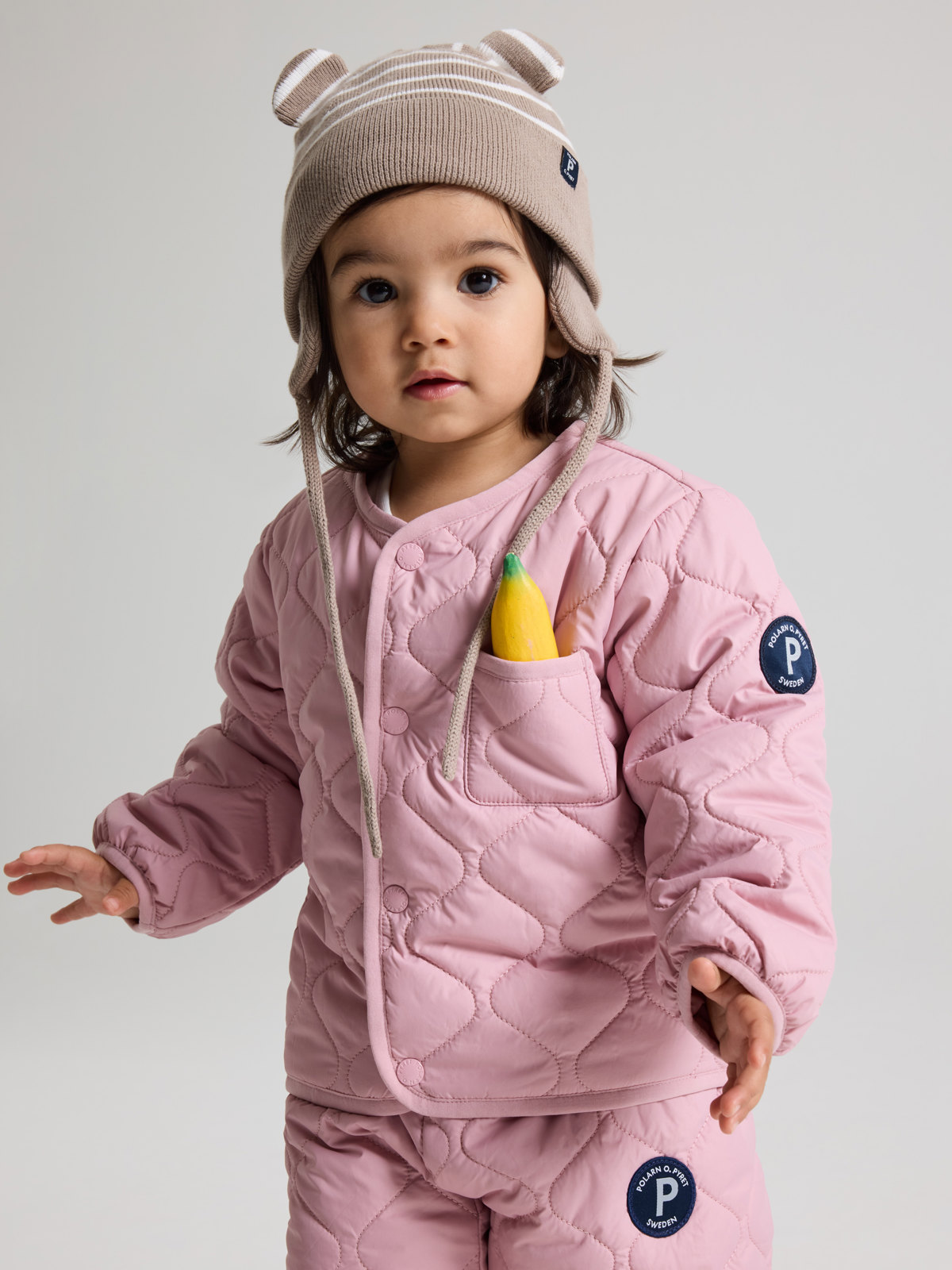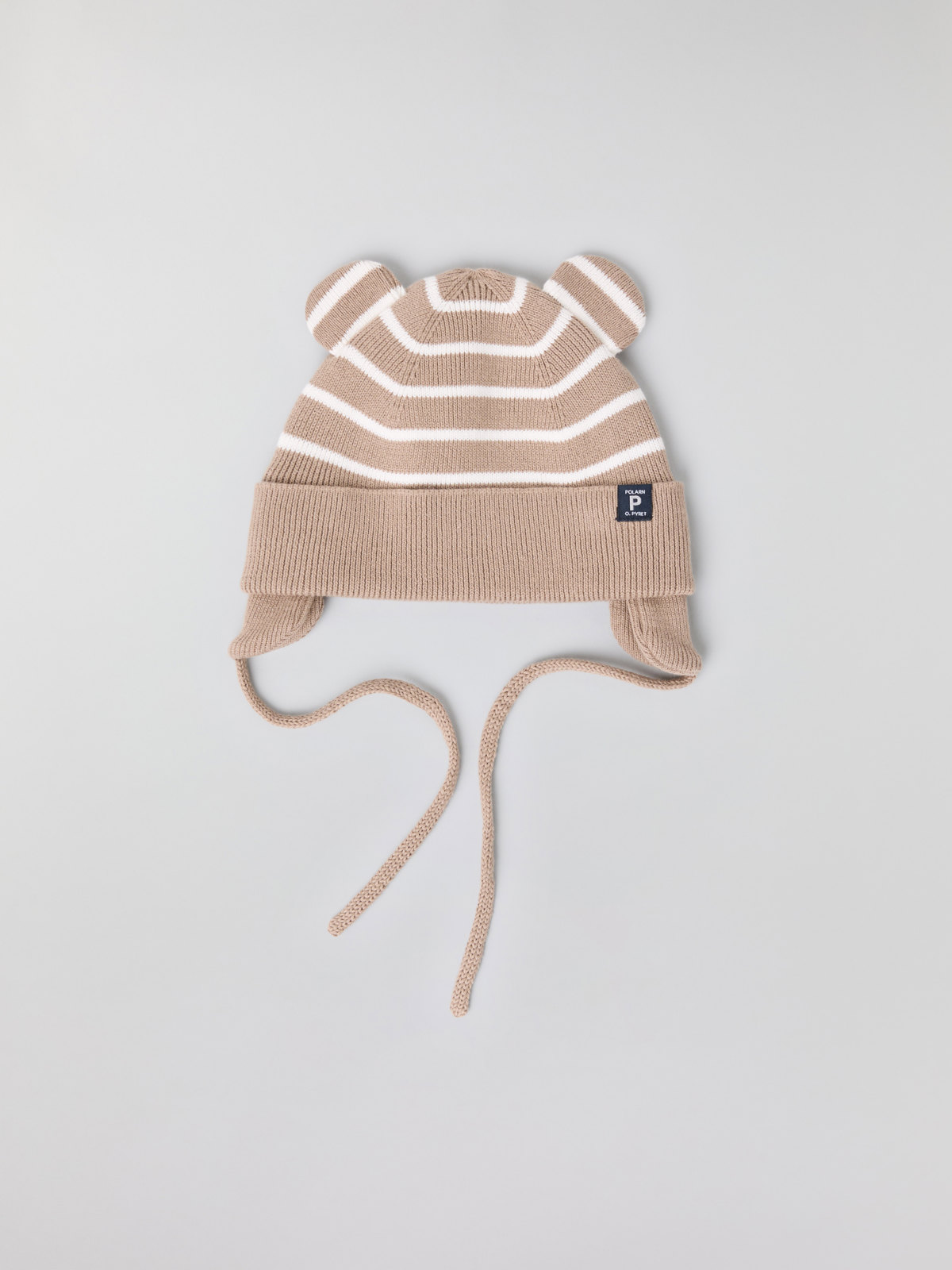 Strickmütze aus 100 % Bio-Baumwolle mit weichem Trikotfutter, bequem sowohl im Kinderwagen wie auf dem Arm.