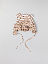 Die Mütze wird mit einem weichen Band, das unter dem Kinn gebunden wird, festgehalten.