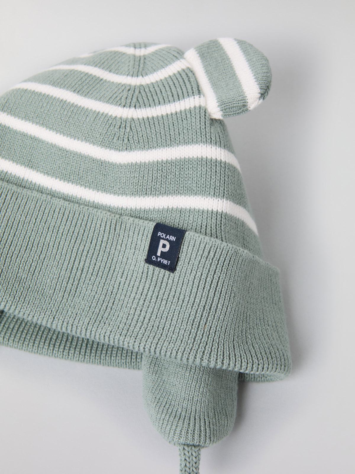 Strickmütze aus 100 % Bio-Baumwolle mit weichem Trikotfutter, bequem sowohl im Kinderwagen wie auf dem Arm.