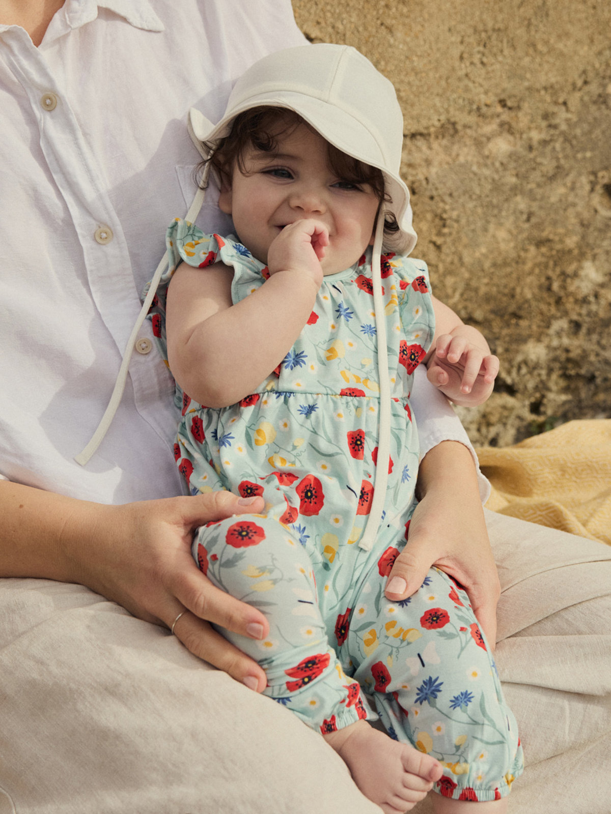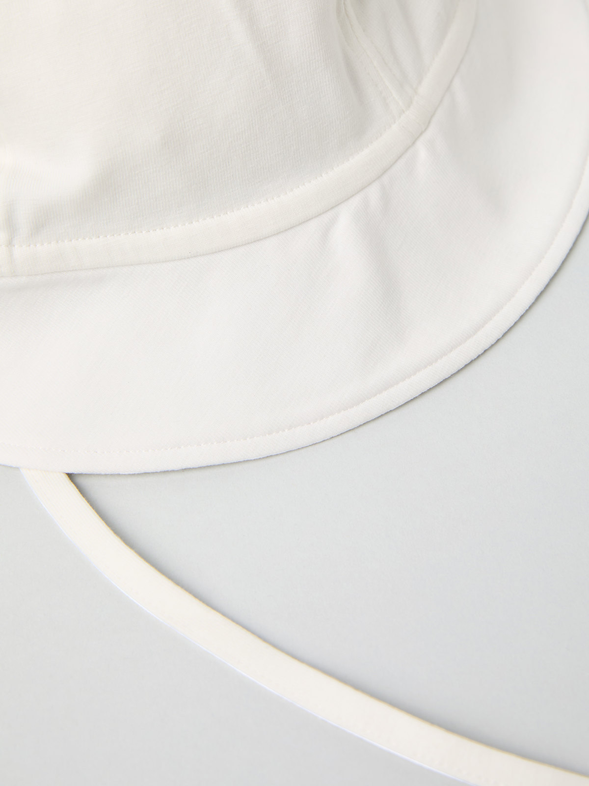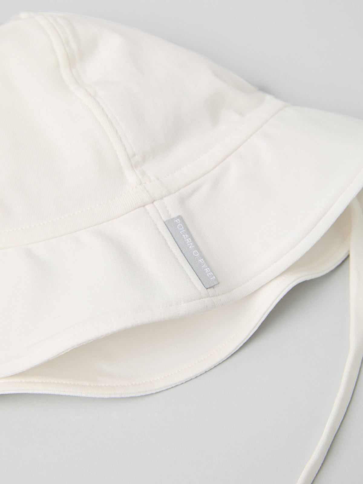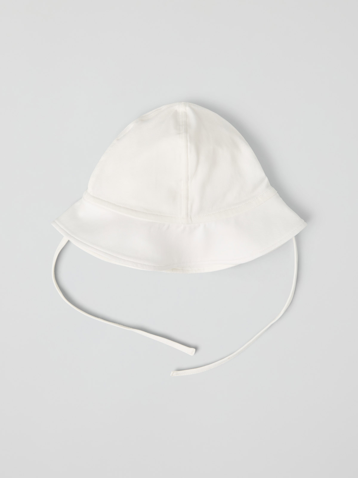 Einfarbiger Sonnenhut aus weicher Bio-Baumwolle für Babys. Er bietet perfekten Schutz vor starker Sonneneinstrahlung. Die Bindebänder werden unterm Kinn geschlossen und sorgen dafür, dass der Sonnenhut nicht verrutscht.