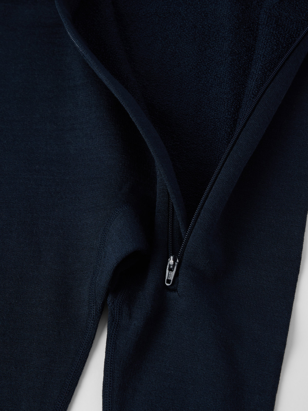 Der herrlich warme Overall aus Merinowollfrottee nimmt Feuchtigkeit effizient auf, damit Kinder warm und trocken bleiben. Der Frottee sorgt mit seinen Schlingen für ein wärmendes Luftpolster am Körper. Wolle hält die Wärme und ist atmungsaktiv. Der Overall hat vorne einen langen Reißverschluss für bequemes An- und Ausziehen.