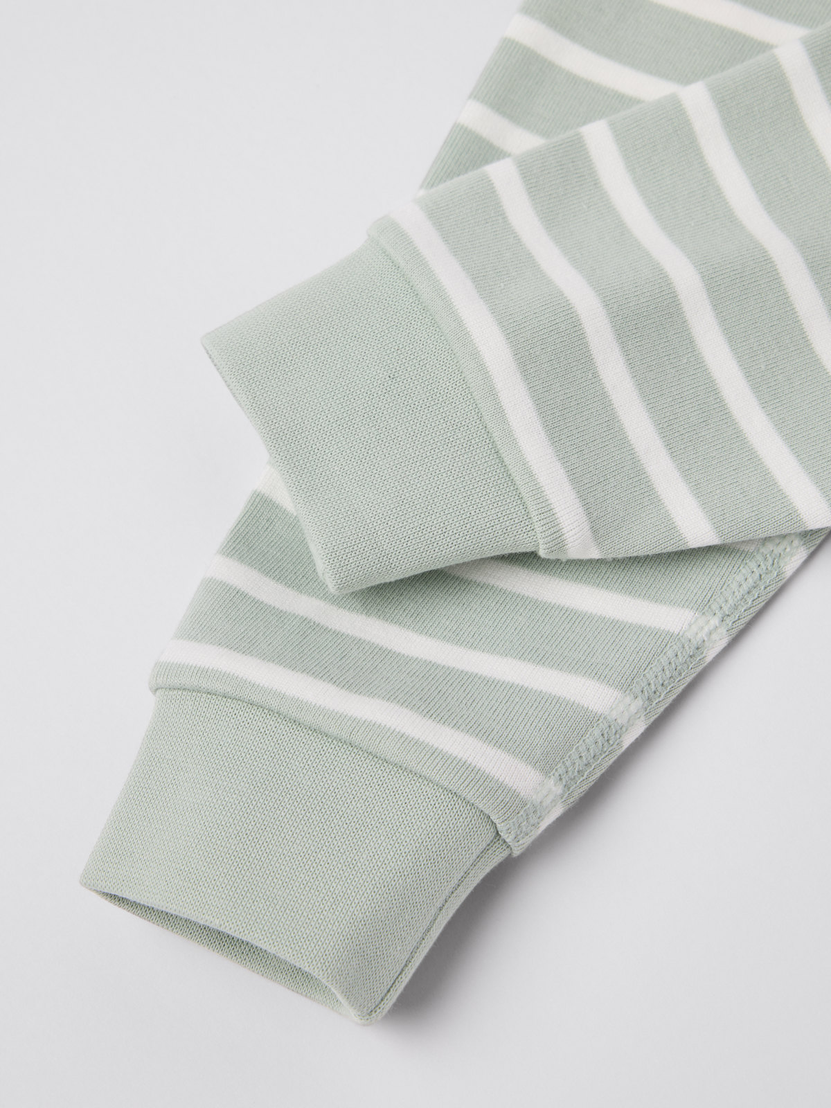 Jerseyhose aus weicher Bio-Baumwolle. Ein tolles Basisteil, das sowohl zu Hause als auch im Kindergarten eine gute Figur macht. Die Hose in unserem klassischen Streifenmuster ist mit einem elastischen Bund versehen, der innen mit einem Knopflochgummi reguliert werden kann. Die Beinabschlüsse sind mit weichen bündchen besetzt.
