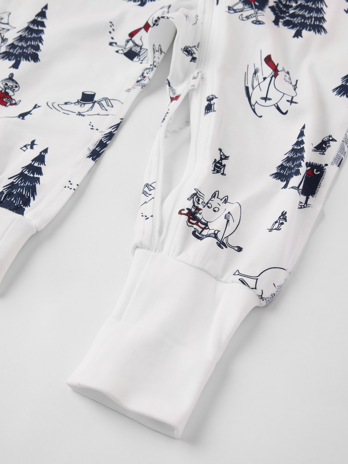 Schlafanzug-Einteiler aus weicher Bio-Baumwolle – Teil unserer beliebten Design-Kooperation zur Feier des 80. Mumin-Jubiläums 2025. Der Overall ist rundum bedruckt mit Illustrationen aus Tove Janssons Mumintroll-Geschichten. Die Bündchen an Ärmeln und Beinen sind extra lang und können mit dem Kind mitwachsen. Der lange Reißverschluss von Hals bis Bein lässt sich sowohl von oben als auch unten öffnen, um das An- und Ausziehen zu erleichtern.