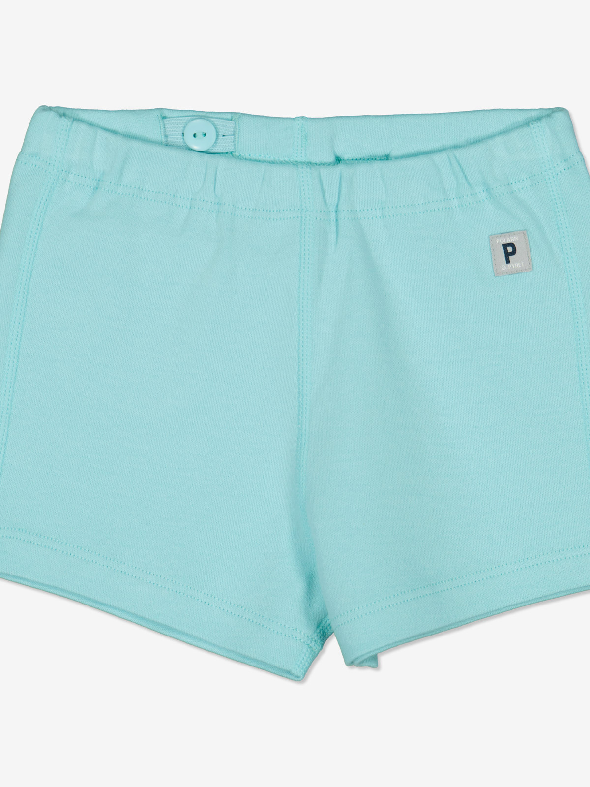 Einfarbige Shorts aus 100 % Bio-Baumwolltrikot für Babys. Die luftigen Shorts haben besonders weiche Nähte, die sanft zu empfindlicher Babyhaut sind. Der elastische Bund kann mit einem Knopflochgummi reguliert werden.
