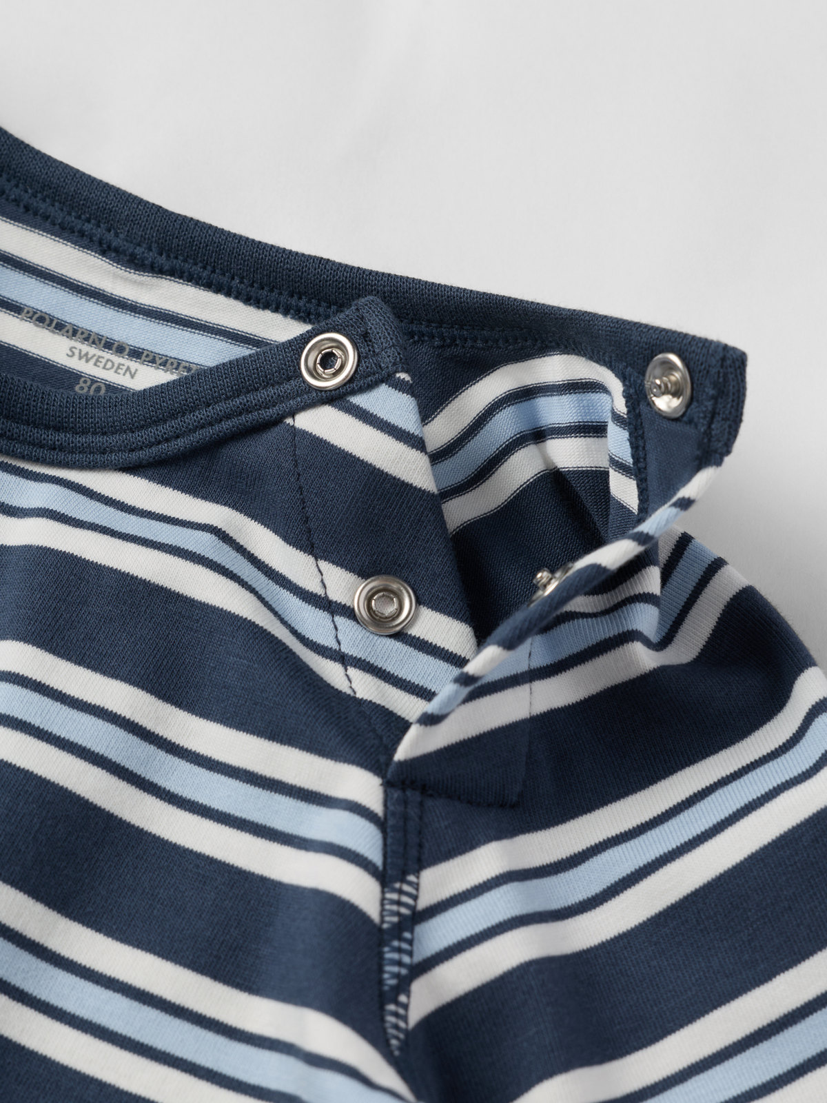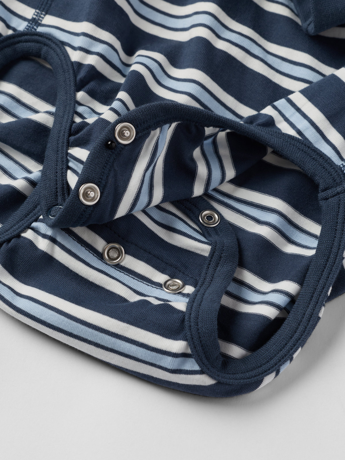 Druckknöpfe auf einer Schulter erleichtern das An- und Ausziehen.