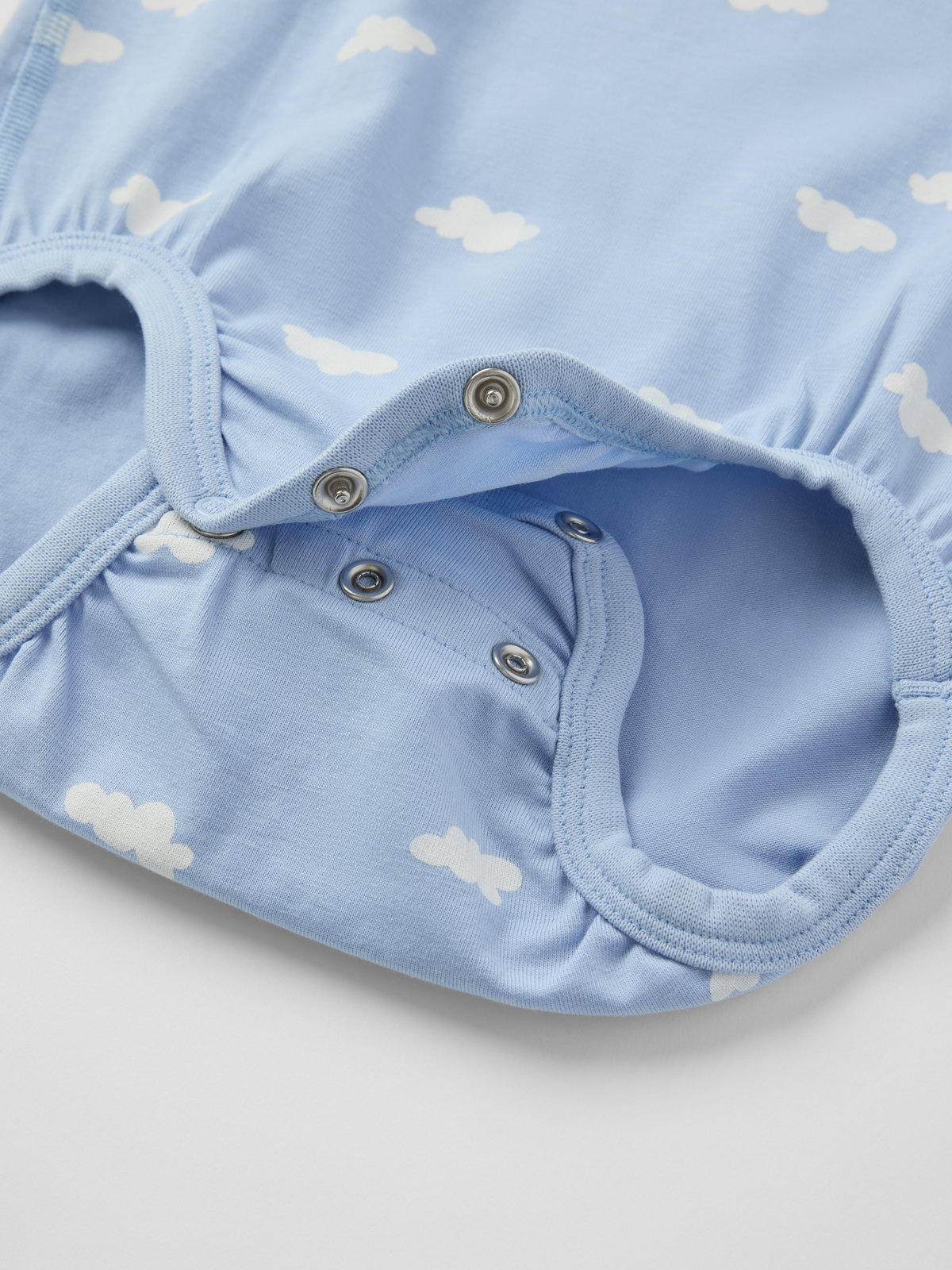 Druckknöpfe auf einer Schulter erleichtern das An- und Ausziehen.