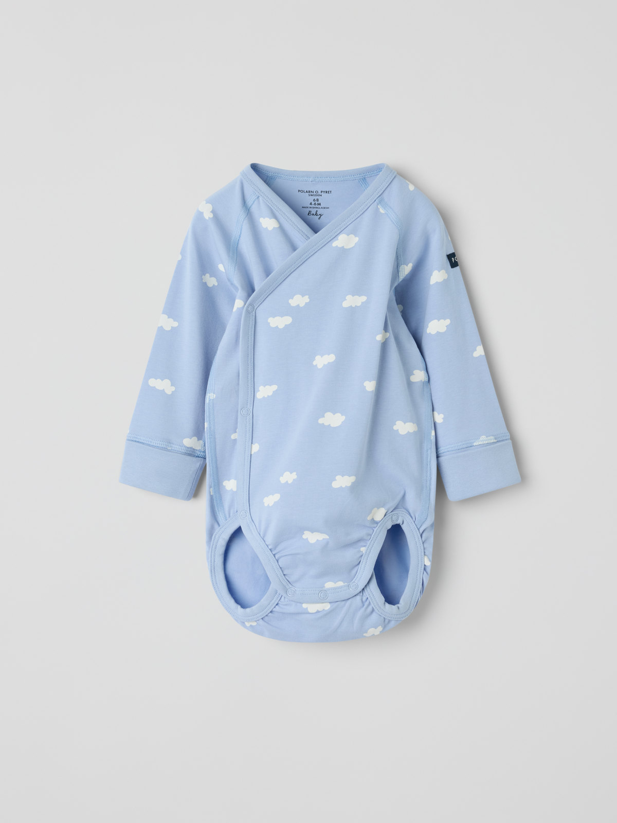 Verlängerbarer Wickelbody aus Bio-Baumwolle. Dank unserer praktischen Lösung mit einer zusätzlichen Reihe an Druckknöpfen im Schritt und Ärmelbündchen zum Umschlagen kann der Body mit deinem Baby mitwachsen!