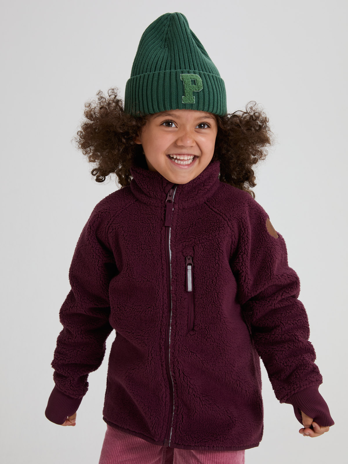 Anschmiegsame, bequeme Teddyfleecejacke aus winddichtem Material mit hoher Atmungsaktivität. Ein perfektes Kleidungsstück, das dein Kind an kühlen Tagen im Frühling und Herbst warm und trocken hält.