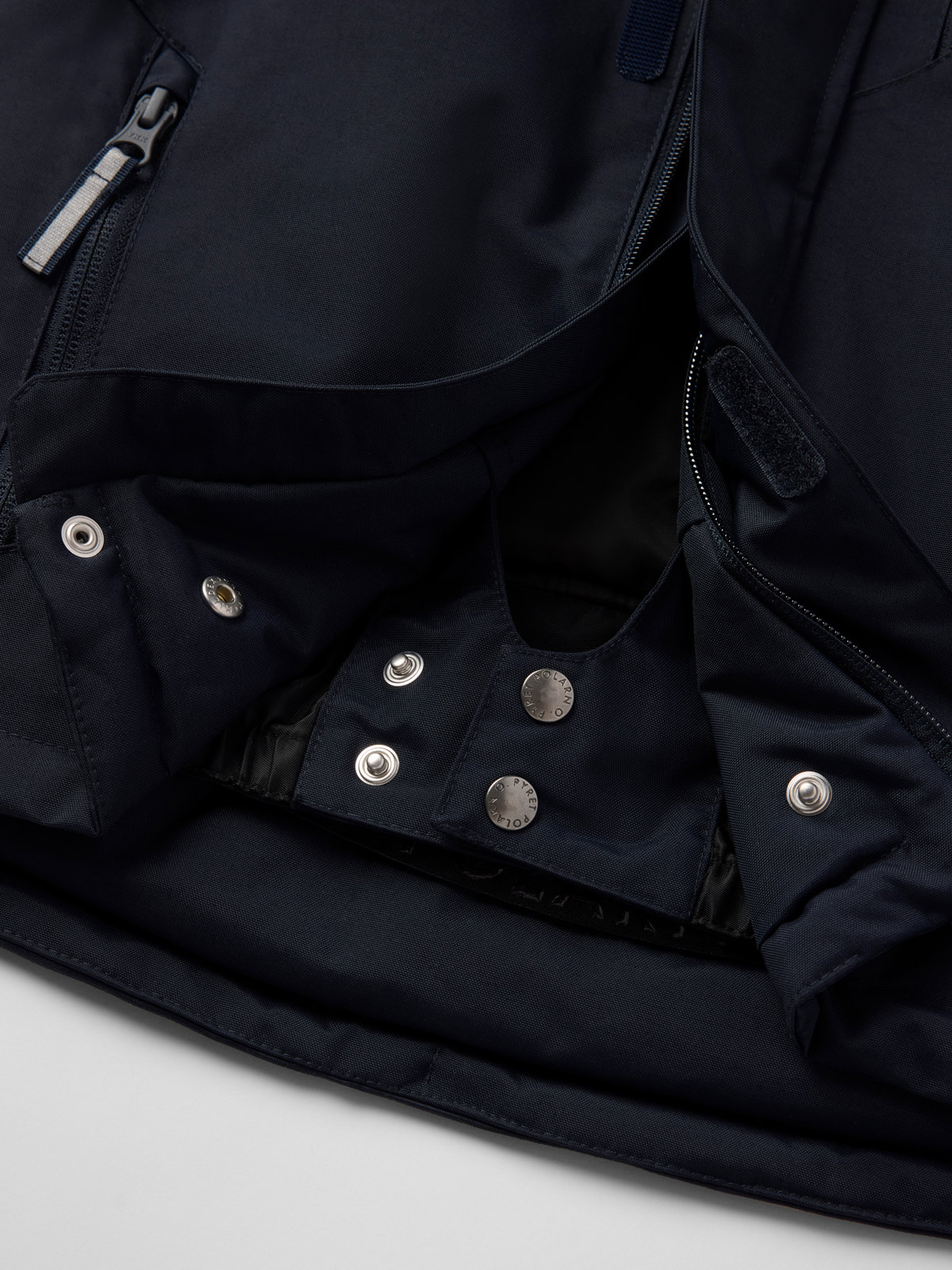 • Der Reißverschluss ist oben mit einem Kinnschutz unterlegt, damit an Hals und Gesicht nichts kratzt, und zum Schutz vor Kälte und Schnee mit einer Windschutzleiste ausgerüstet