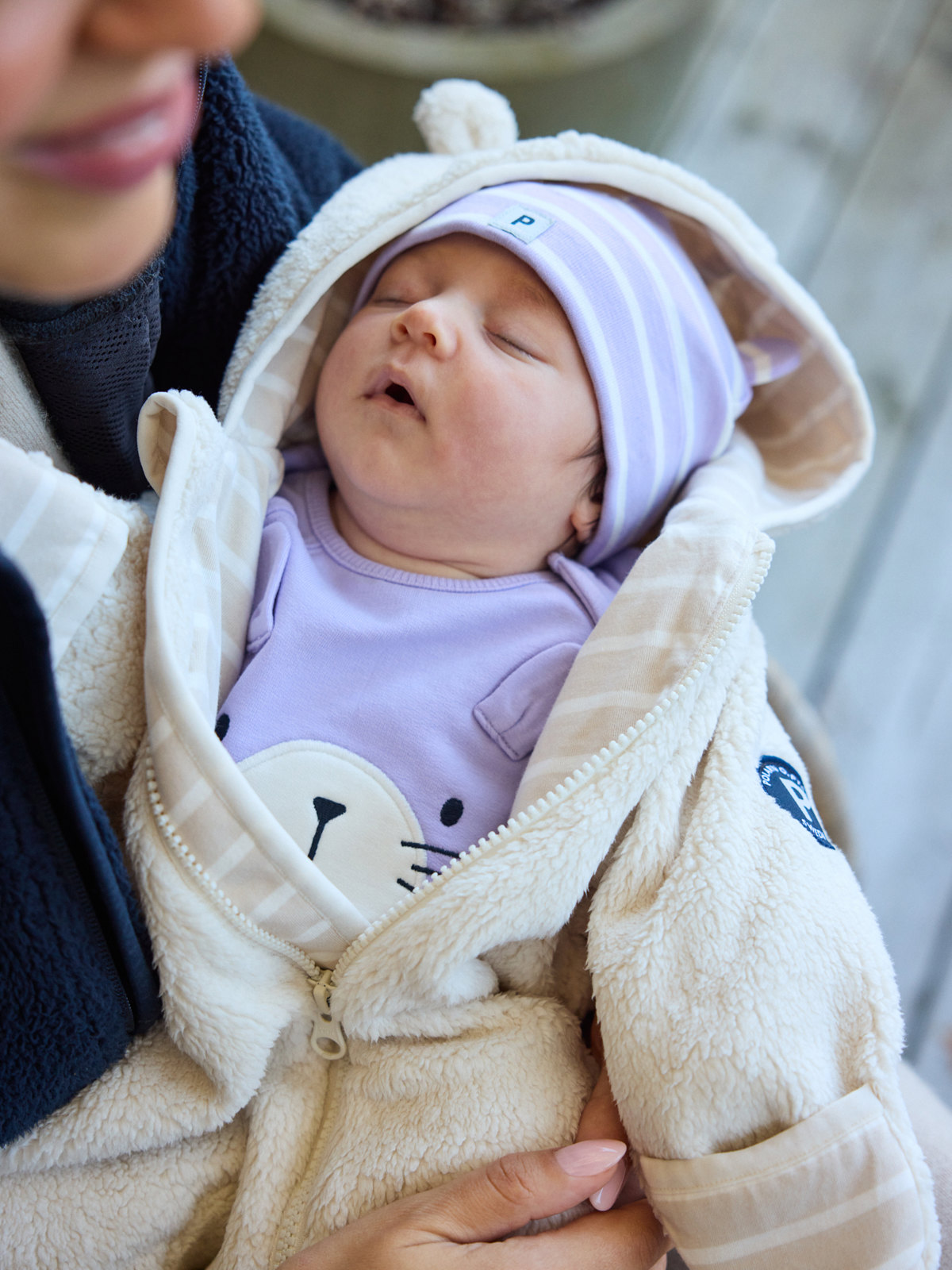 Overall aus weichem Teddyfleece für Babys – ein richtig kuscheliges Lieblingsteil im Kinderwagen oder auf dem Arm!