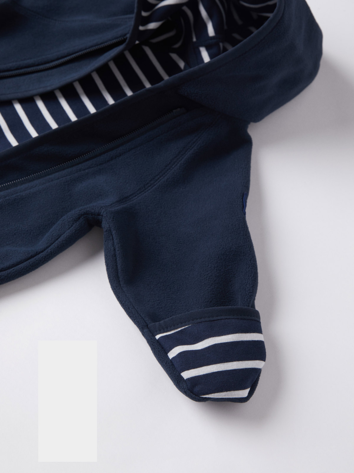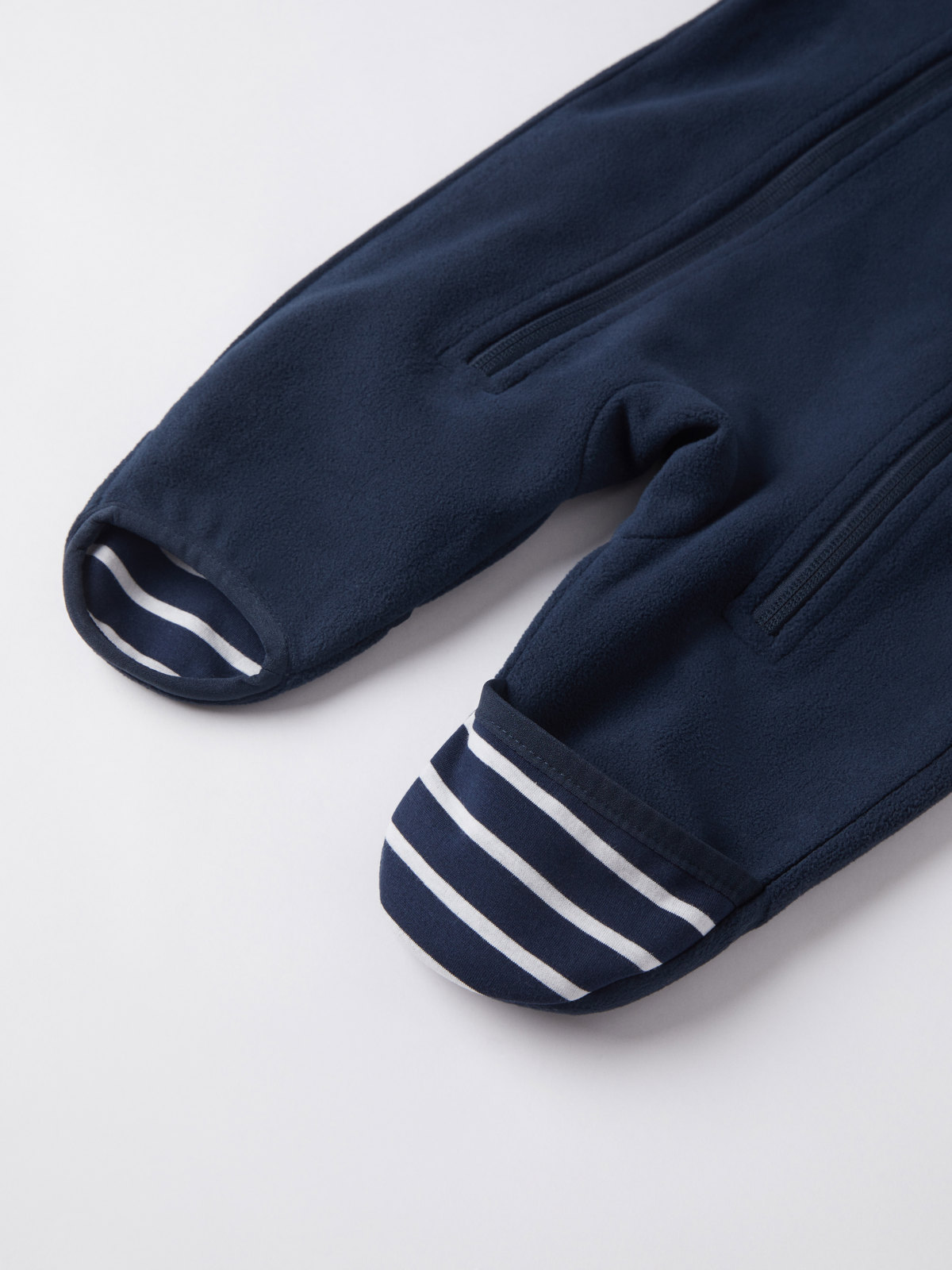 Die abgerundeten Abschlüsse an Ärmeln und Beinen lassen sich umschlagen, sodass die kleinen Hände und Füße schön warm bleiben.