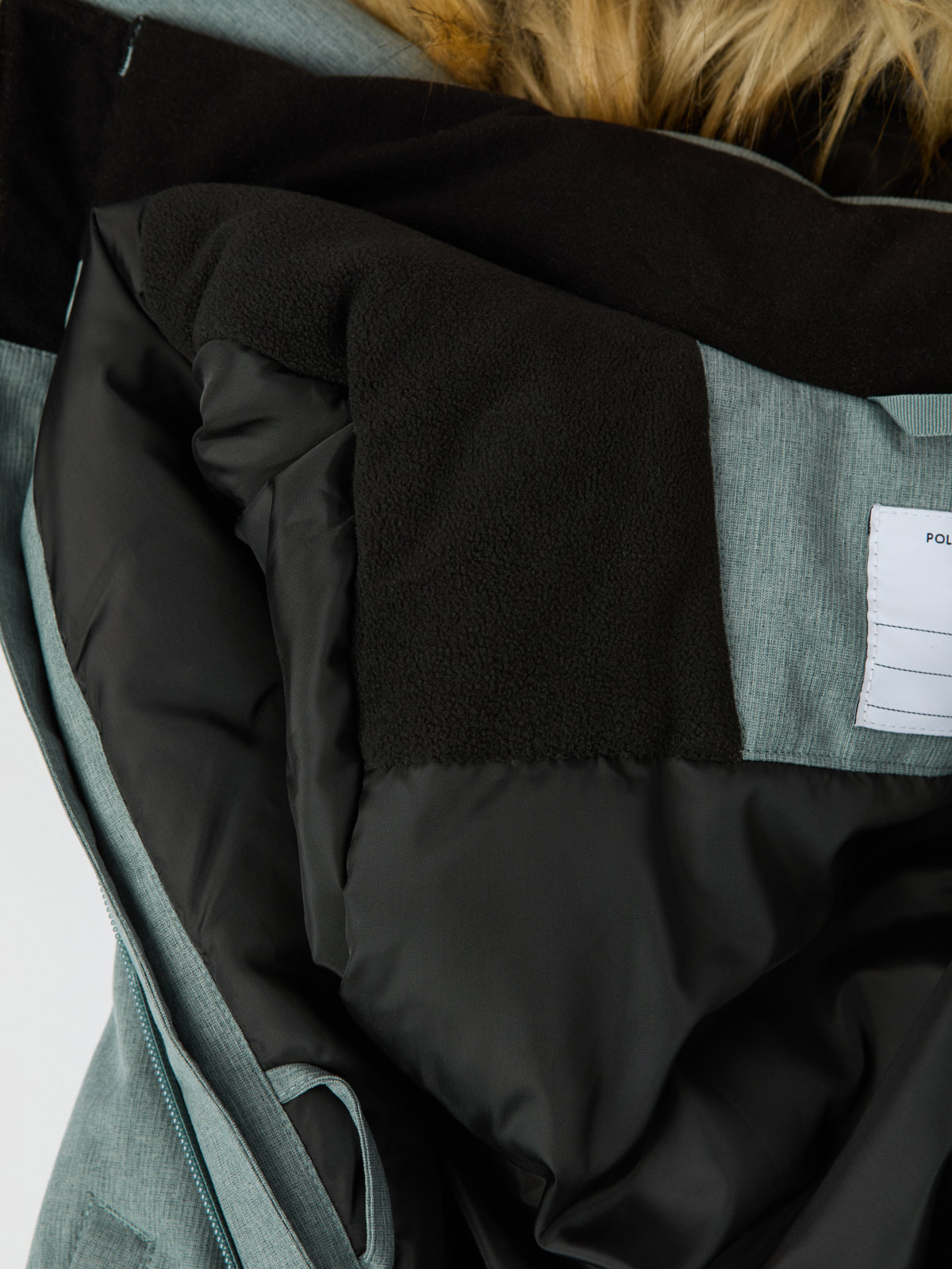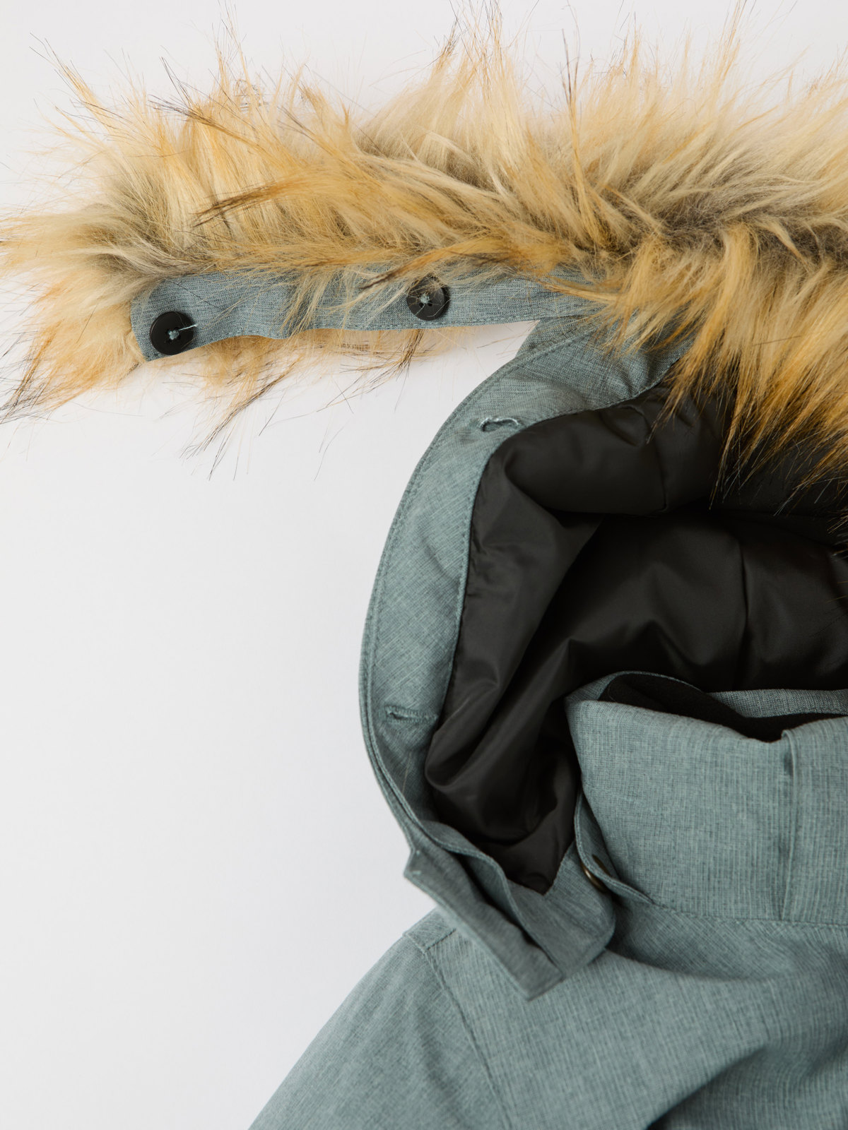 • Die verstellbare Kapuze hat Druckknöpfe für mehr Sicherheit und kann abgenommen werden. Sie hat außerdem einen Gummizug hinten für die beste Passform sowie abnehmbares Fellimitat für zusätzlichen Schutz