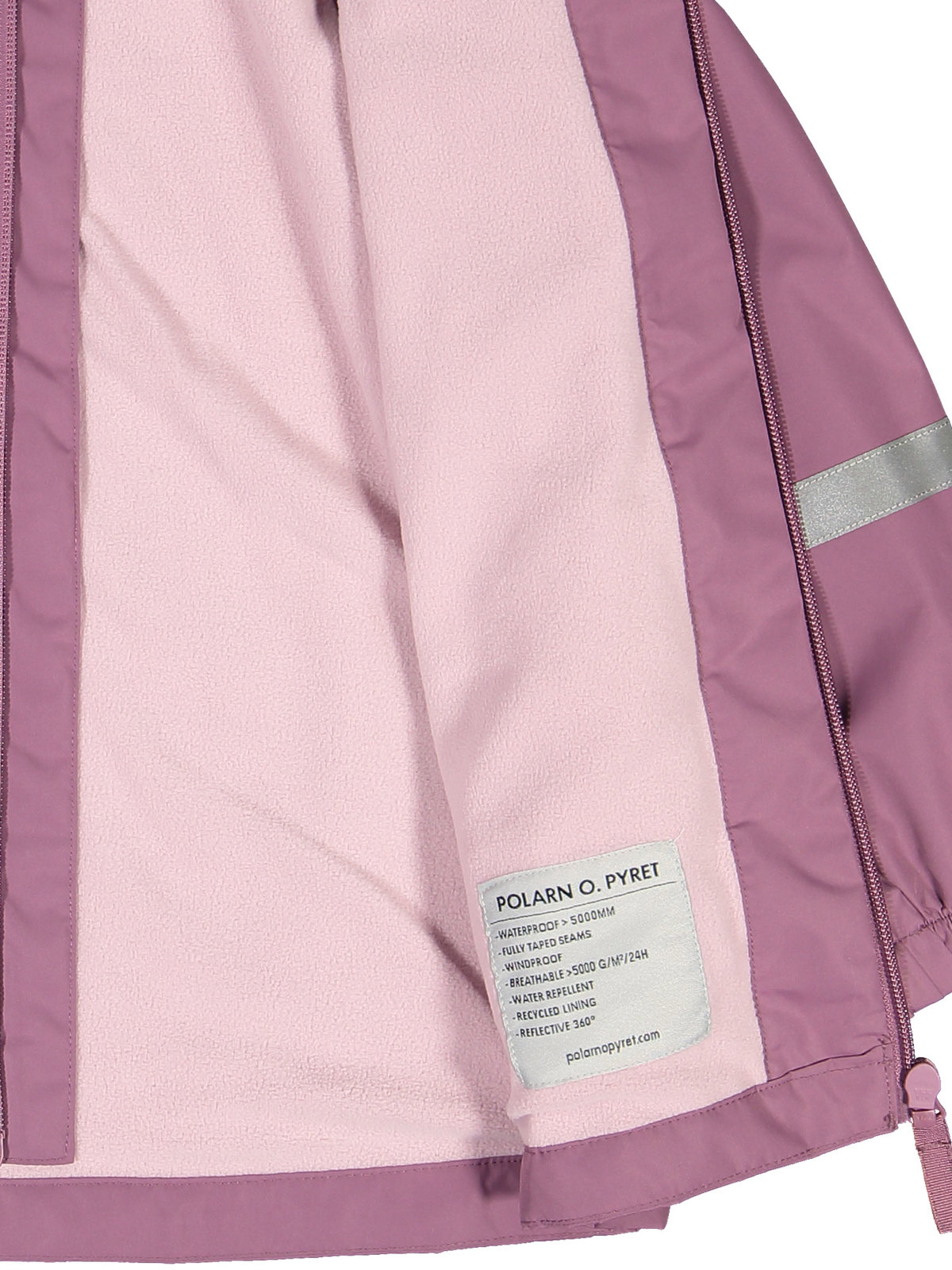 Die tragefreundliche wind- und wasserdichte Shelljacke ist praktisch und leicht und kann daher auch toll im Rucksack mitgenommen werden! Die strapazierfähige Jacke punktet durch hohe Atmungsaktivität. Sie hat ein einfarbiges Fleecefutter aus 100 % recyceltem Polyester und eine abnehmbare Kapuze mit Druckknöpfen und Gummizug in den Seiten. Die Jacke hat elastische Ärmelabschlüsse und vollständig versiegelte Nähte, die das Kleidungsstück wasserdicht machen. Die inwendige Windschutzleiste am Reißverschluss schützt vor kalter Luft. Am oberen Ende ist der Reißverschluss mit weichem Fleece unterlegt. Die Jacke ist in zwei Ausführungen erhältlich, einfarbig und mit Tiermuster. • Winddicht • Wasserdicht Wasserdruck-Resistenz des Materials > 5000 mm • Wasserabweisende Imprägnierung mit BIONIC-FINISH® ECO, einer Technologie, die kein PFAS verwendet • Hohe Atmungsaktivität > 5000 g/m2/24 h • 3M-Reflektoren mit 360-Grad-Sichtbarkeit • Vollständig versiegelte Nähte • • Fleecefutter • Abnehmbare Kapuze • YKK-Reißverschluss • Vorgeformte Ärmel • Elastische Ärmelabschlüsse • Zwei Taschen vorne Produktionsland: China Fabrik: Hangzhou Yue Hua Garments Co Ltd Erfahre mehr unter https://www.polarnopyret.de/po.p-cares/unsere-lieferanten