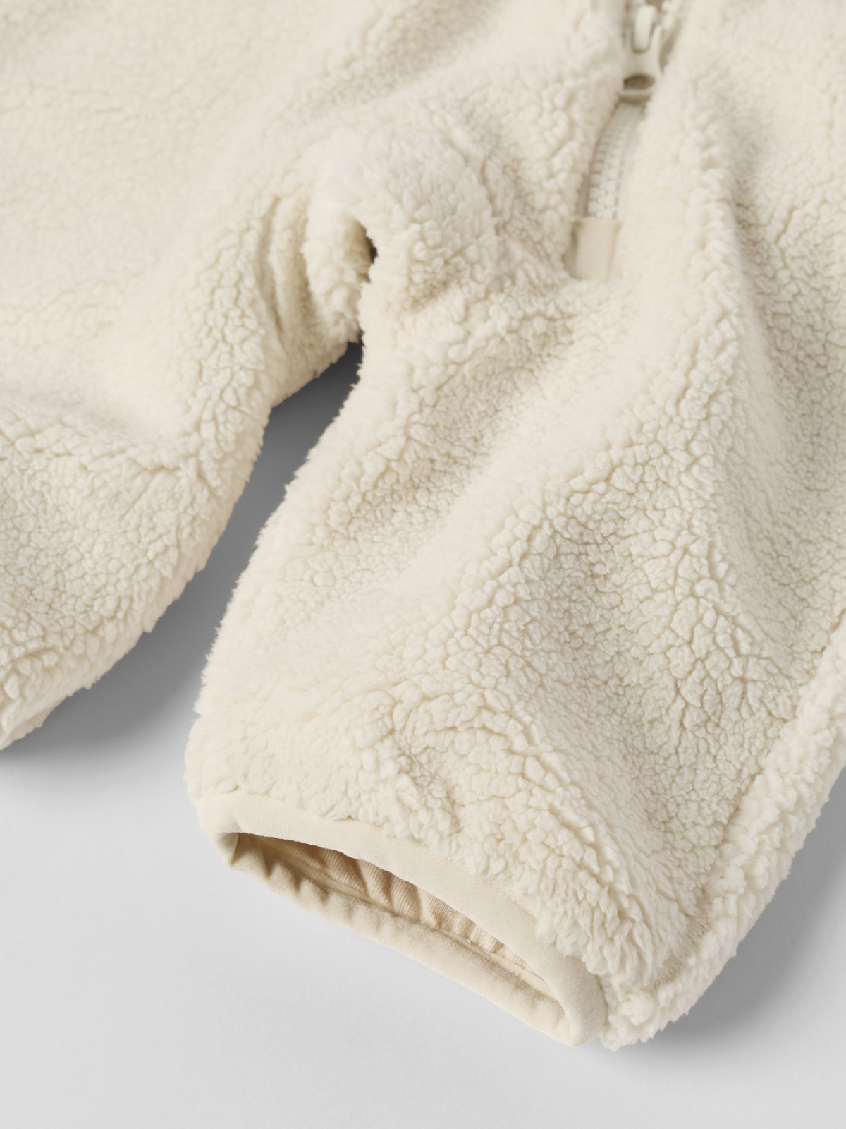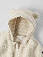 • Feste Kapuze in Größe 50–74, Größe 80 mit abnehmbarer Kapuze mit Druckknöpfen