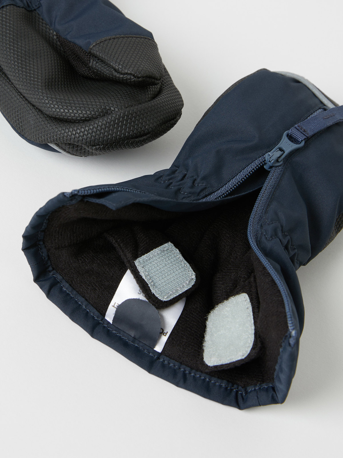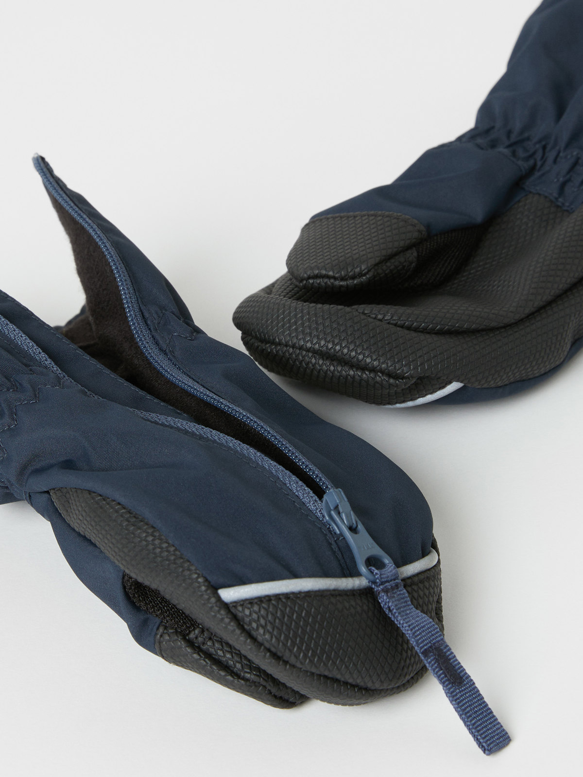 Winddichte Fäustlinge aus wasserdichtem Material. Die Fäustlinge haben ein behagliches Fleecefutter und einen langen Reißverschluss auf der Oberseite, der das An- und Ausziehen erleichtert. Die Fäustlinge haben vorne Reflektoren und eine Beschichtung für guten Griff auf der Handfläche.