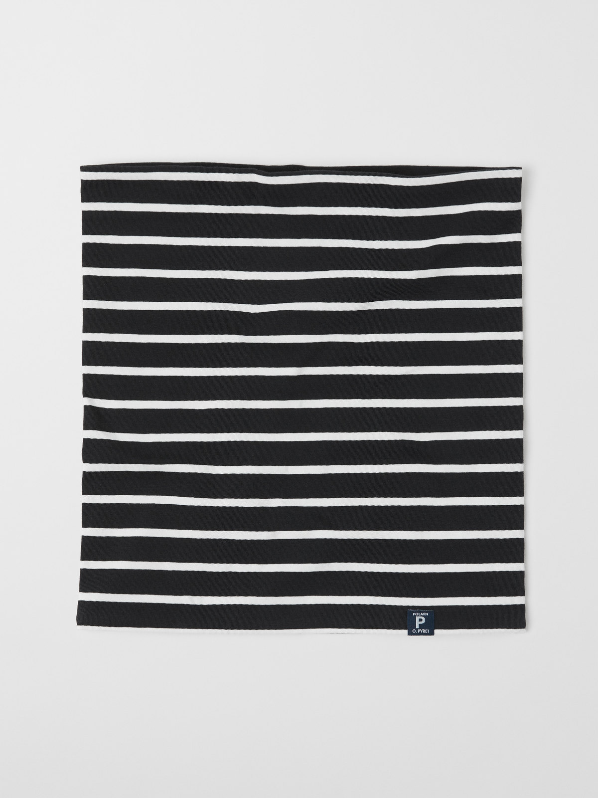 Gestreifter Rollkrageneinsatz aus Bio-Baumwolltrikot. Der Rollkrageneinsatz ist innen mit einem weichen Fleece aus recyceltem Polyester gefüttert. Unter einer Jacke oder einem Overall hält er an kalten Tagen mollig warm.